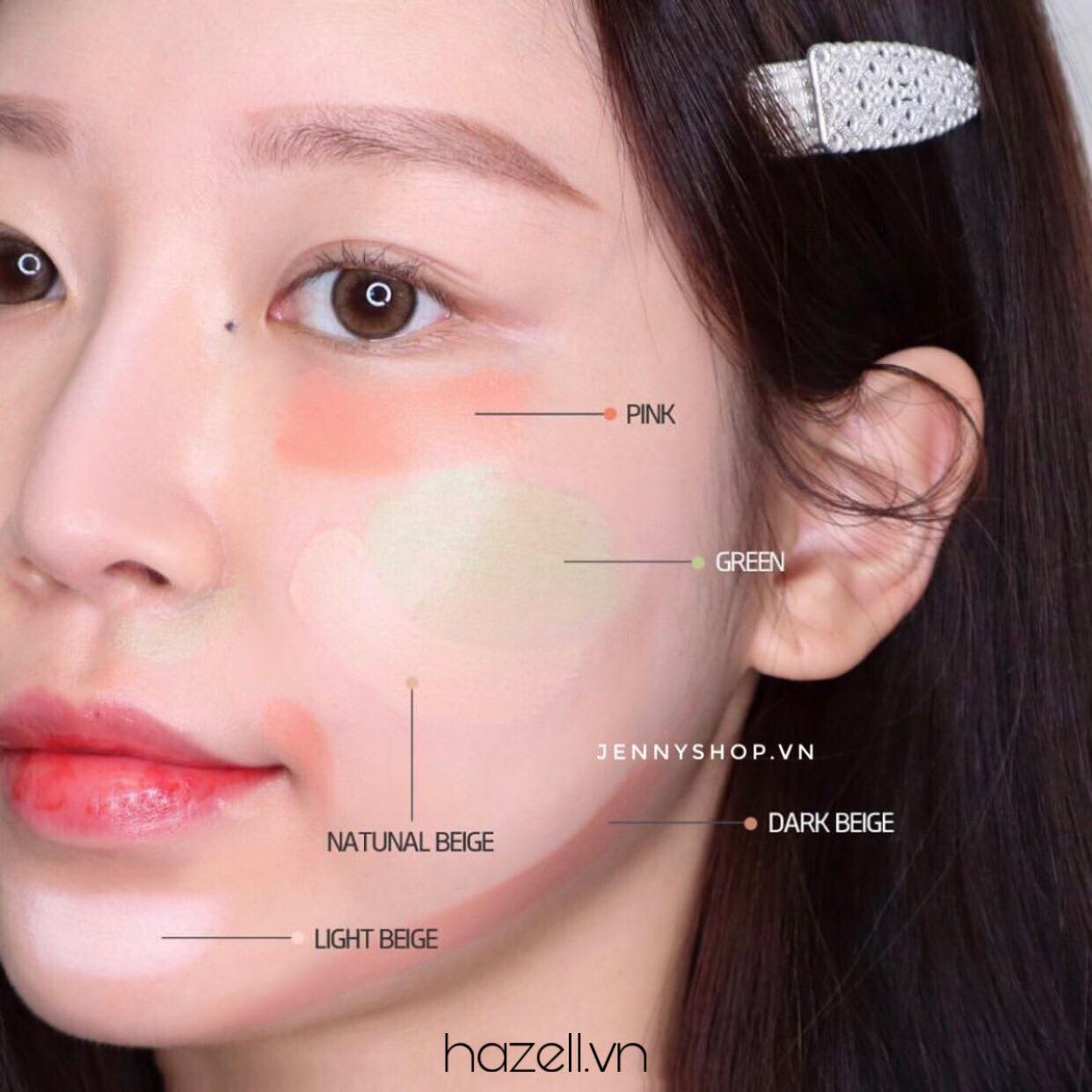 4 và 5: Che những vết thâm, nám hoặc cân bằng vùng da không đều màu. 2 tone lựa chọn cho mỗi loại da hoặc có thể mix các tone lại để cho ra màu hoàn chỉnh.