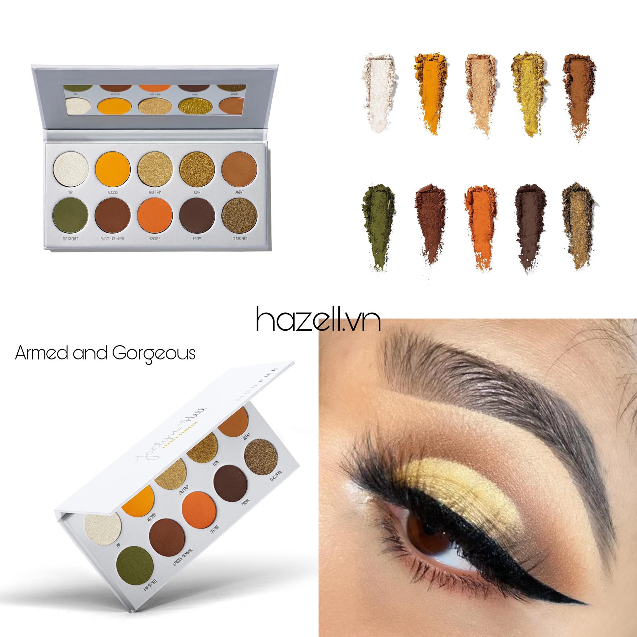 ✨Như với Armed & Gorgeous thì hot đến nổi luôn out of stock trên kệ lẫn website của Morphe. Và luôn giới hạn mỗi khách chỉ đươc mua 1 bảng. Được gọi là bảng vàng vì tone màu vàng, ánh kim, cam và xanh lá đậm được trãi xuyên suốt 10 ô màu gồm 4 ô nhũ và 6 ô lì.