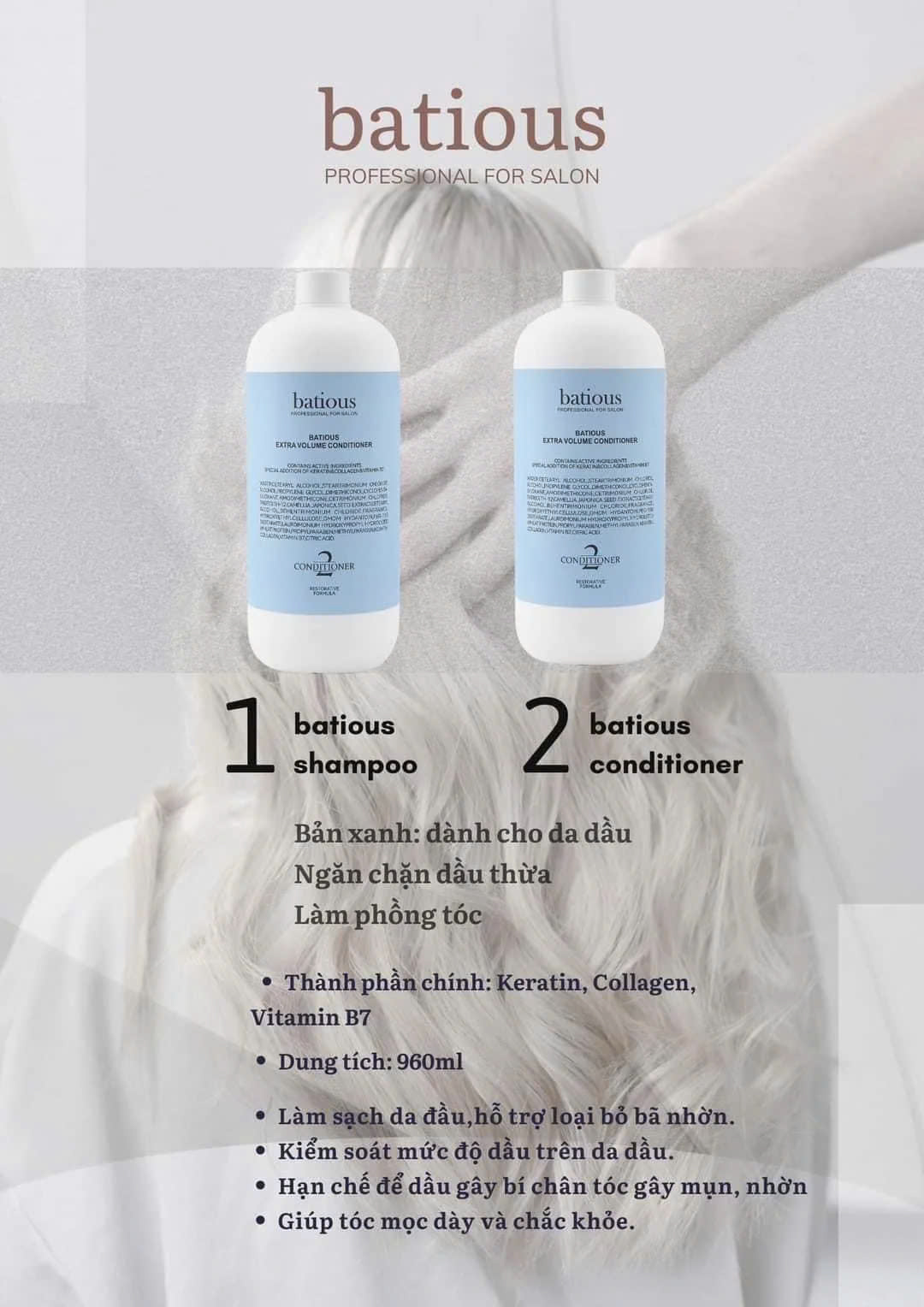 Bộ gội + xả Batious Extra Volume 500ml (Xanh) - HÀNG NHẬP KHẨU