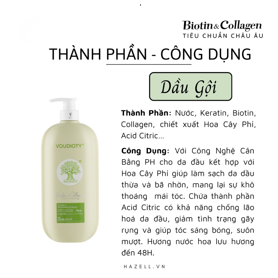 Thành phần: Nước, Keratin, Biotin, Collagen, chiết xuất Hoa Cây Phỉ, Acid Citric…