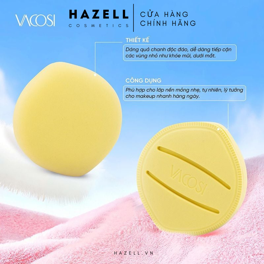Bông Mút Vacosi Tán Nền Đệm Khí Air-Fit Makeup Sponge hiện đã có tại Hazell có những đặc trưng nổi bật như sau: