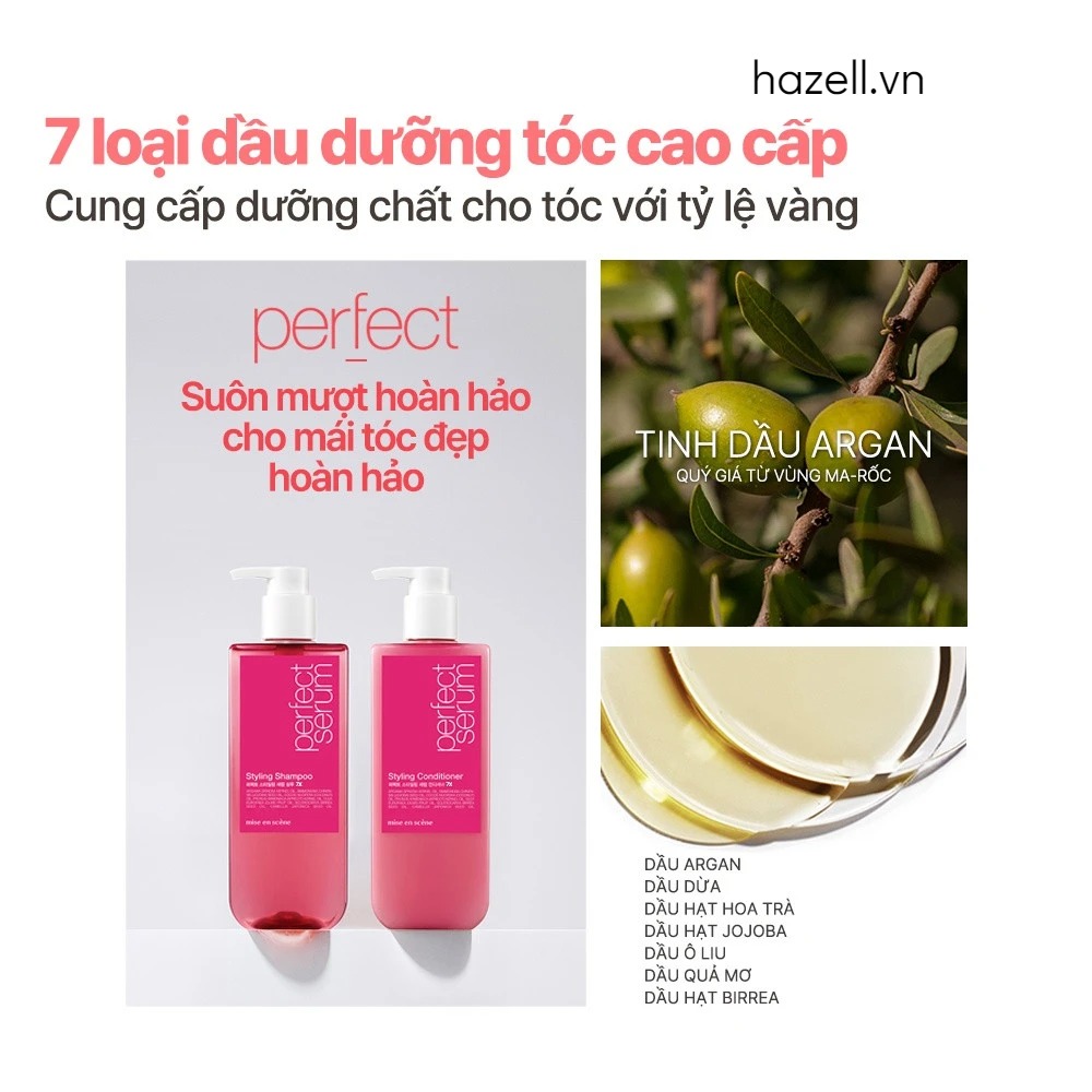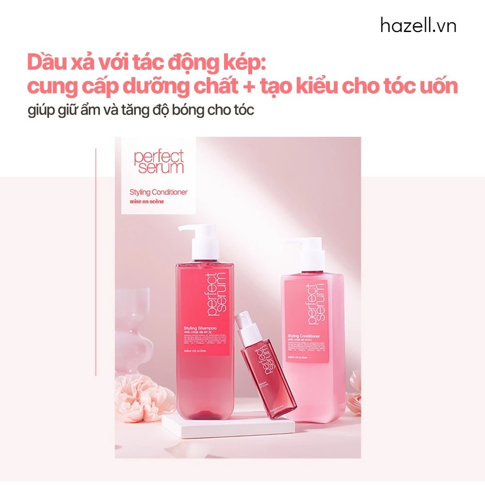 - Dầu xả Perfect Serum Styling với tác động kép: cung cấp dưỡng chất & tạo kiểu cho tóc uốn – giúp cung cấp dưỡng chất đồng thời giữ ẩm và tăng độ bóng cho tóc