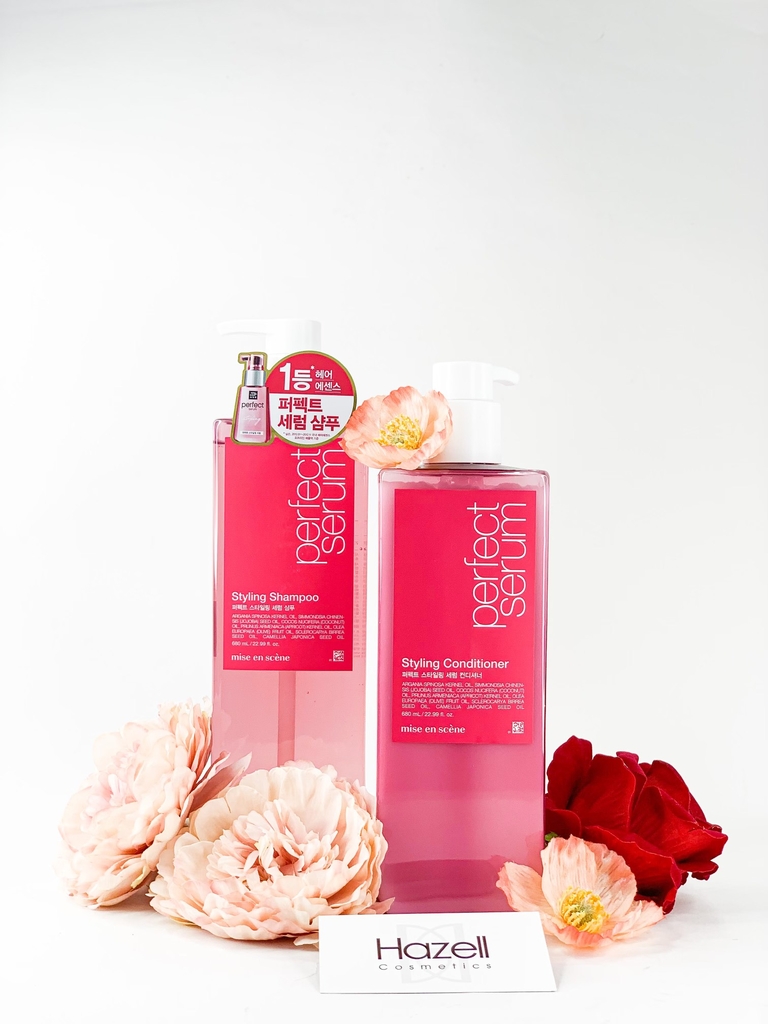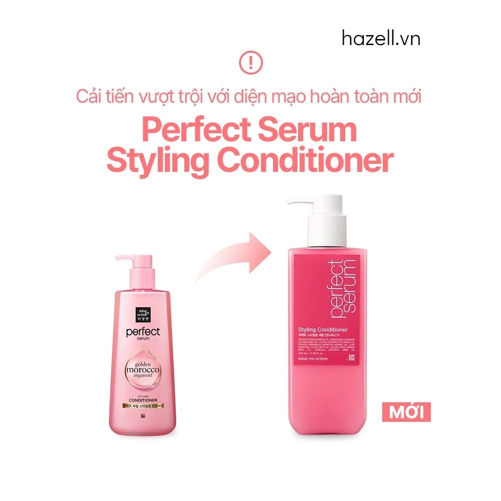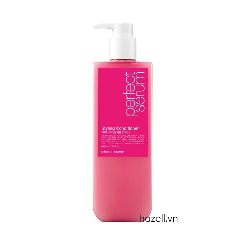 Dầu xả mise en scene Perfect Serum Styling Conditioner 530ml dưỡng tóc suôn mượt, dễ vào nếp dành cho tóc uốn. Được chiết xuất từ 7 loại tinh dầu dưỡng tóc cáo cấp giúp nhanh chóng thâm nhập sâu vào tóc giúp nuôi dưỡng tóc suôn mượt, phục hồi tóc khỏe mạnh, ngăn ngừa tình trạng xơ, rối, gãy, rụng tóc hiệu quả được cải tiến trong diện mạo mới.