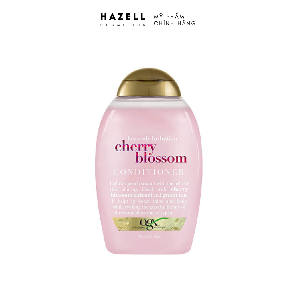 Dầu Xả OGX Heavenly Hydration + Cherry Blossom Conditioner được thiết kế dành cho tóc khô xơ, thiếu độ ẩm, tăng cường cấp ẩm cho tóc, nuôi dưỡng mái tóc bồng bềnh, tràn đầy sức sống. Sản phẩm chứa chiết xuất hoa anh đào và trà xanh cho tóc ẩm mượt và hương thơm tươi mát.