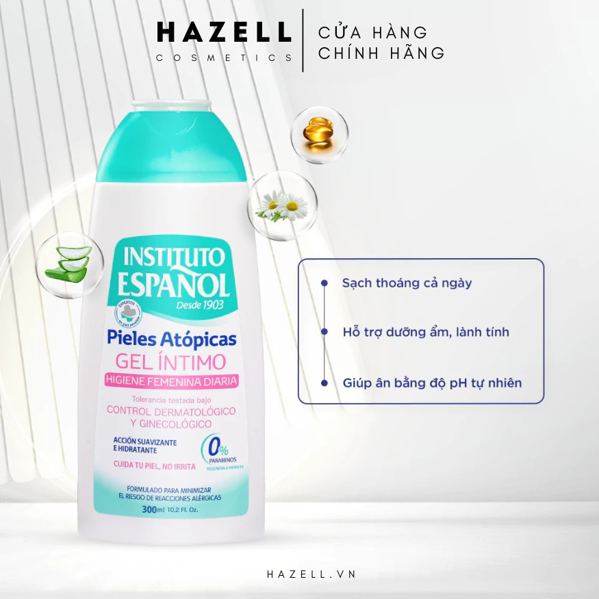 Dung dịch vệ sinh Instituto Espanol Pieles Atopic Gel Intimo 300ml là sản phẩm chăm sóc vùng ‘nhạy cảm’ dành cho cả gia đình được chứng nhận thuần chay xuất xứ từ Tây Ban Nha.