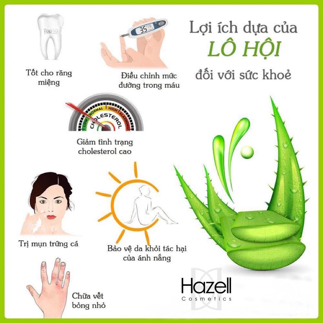 - Chất gel trong lô hội có tác dụng làm se khít lỗ chân lông, làm mát, dịu da bị bỏng rát, viêm da, dị ứng, mụn…