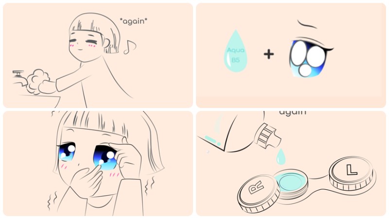 - Trước khi đeo lens thì bạn cần nhỏ nước nhỏ mắt vào lens.