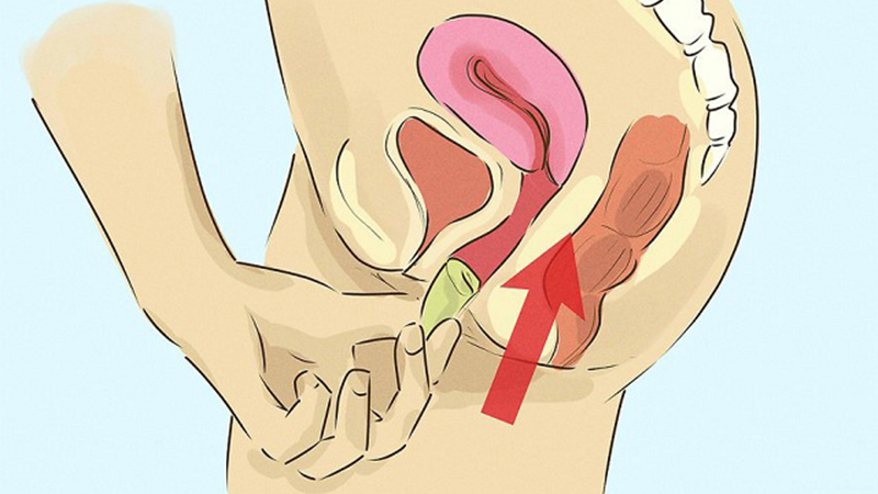 Bây giờ bạn từ từ đẩy cốc vào ở góc khoảng 45 độ hướng đến xương mu, không chọc thẳng lên. Khi đó cốc sẽ bung mở ra và tiếp tục đẩy cốc vào đến khi bạn cảm thấy dễ chịu.
