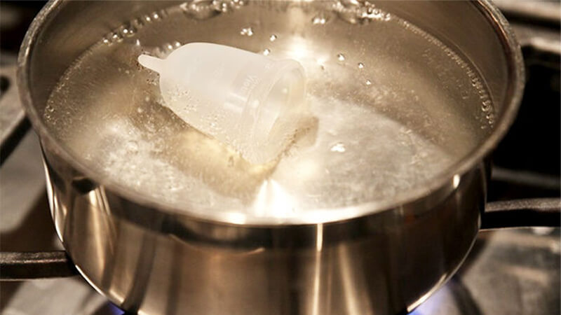 Tiệt trùng cốc nguyệt san cũng đơn giản, bạn chỉ cần lấy cái nồi bỏ cốc vào và đổ ngập nước, vì như vậy cốc sẽ không chạm đáy và bị hư cốc. Sau đó đun nóng lên từ 2 - 3 phút thì bạn có thể lấy ra để nguội và sài được rồi.