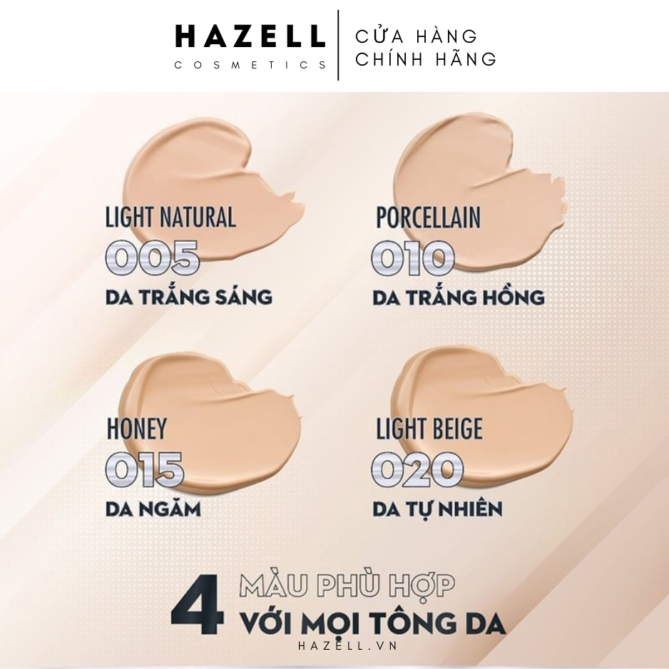 015 Honey: Tông da trung bình sáng, có sắc ấm (warm undertone), phù hợp với đại đa số làn da người châu Á.
