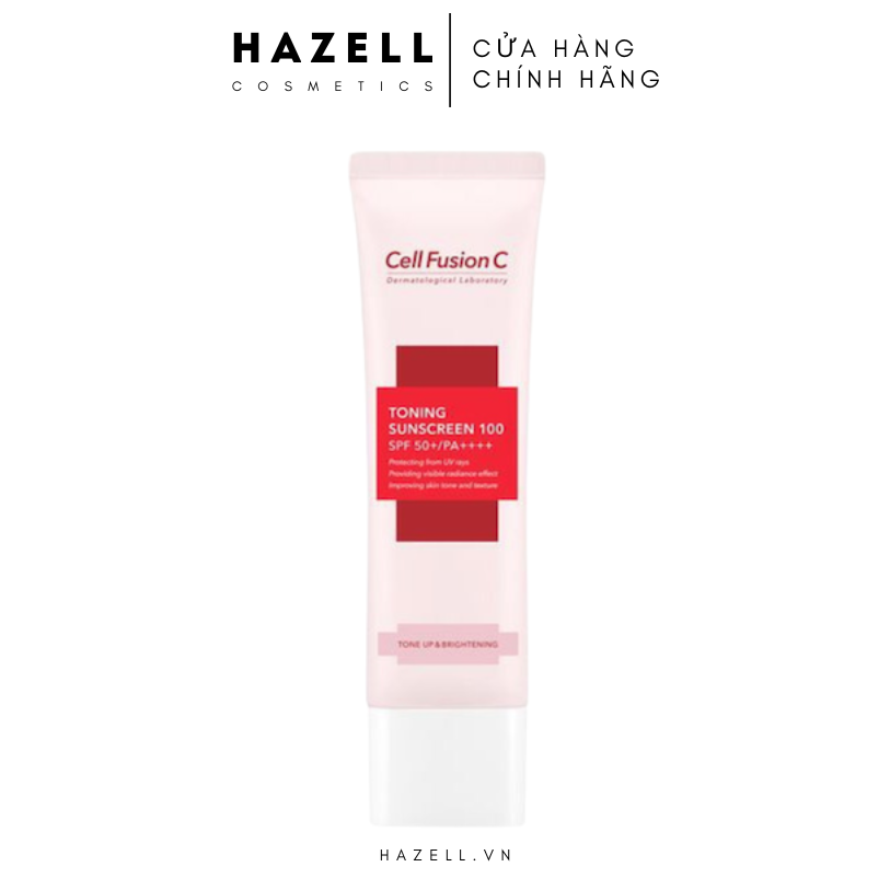- Kem Chống Nắng Nâng Tông Cell Fusion C Toning Sunscreen 100 SPF 50+/PA++++ Kem chống nắng tích hợp 2 bộ lọc vô cơ và hữu cơ giúp tạo màng bảo vệ “vững chắc” dưới tác động của UVA và UVB.