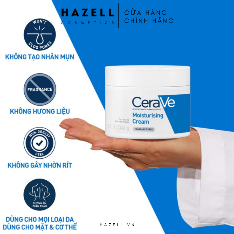 Hệ thống mỹ phẩm chính hãng Hazell Cosmetics là nơi bán kem Kem dưỡng ẩm CeraVe Developed With Dermatologists Moisturising Cream - HÀNG NHẬP KHẨU chính hãng, chất lượng tốt cùng với sự tư vấn chuyên nghiệp nhờ 13 năm kinh nghiệm bán các dòng mỹ phẩm chăm sóc da . Các nàng xem thêm về các loại mỹ phẩm chăm sóc da tại đây nhé : https://hazell.vn/cham-soc