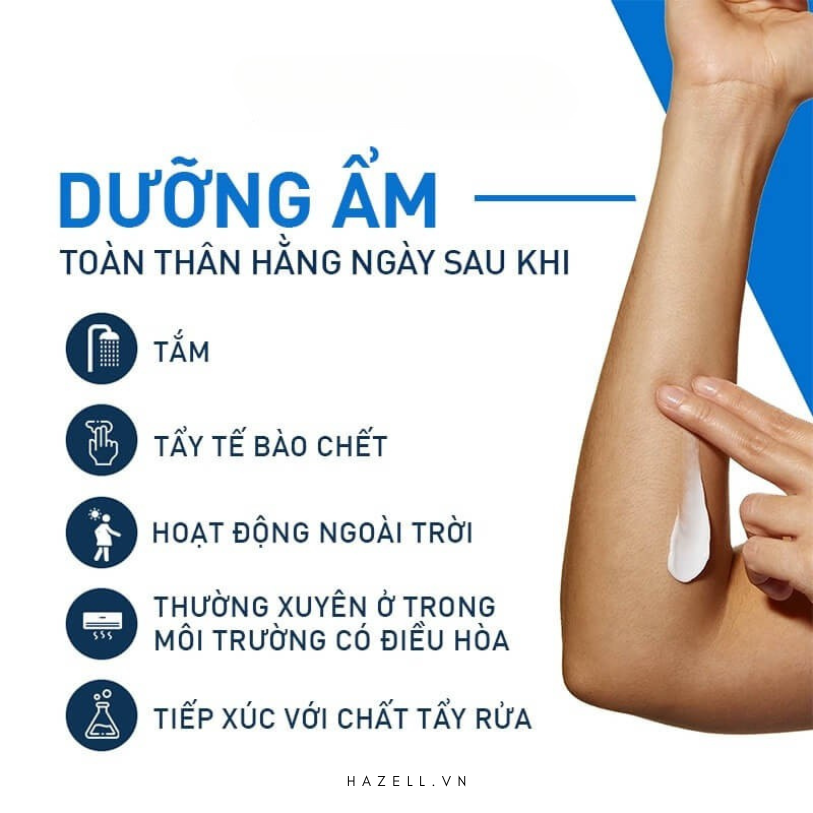 Khi hàng rào độ ẩm của da bị tổn thương, da có thể trở nên khô và ngứa. Kem dưỡng ẩm CeraVe chứa hyaluronic acid và ba loại ceramide thiết yếu, giúp cải thiện tình trạng da một cách hiệu quả. Được phát triển bởi các chuyên gia chăm sóc da, sản phẩm này thích hợp cho cả mặt và cơ thể. Với công thức giàu dưỡng chất, kem thẩm thấu nhanh, không nhờn rít và giúp da luôn ẩm mượt suốt cả ngày.