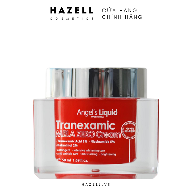 Kem Dưỡng Trị Thâm Nám Angels Liquid Tranexamic Mela Zero Cream giúp hỗ trợ trị thâm nám, tàn nhang, đồi mồi, dưỡng sáng và làm đều màu da chuyên biệt. Với ứng dụng công nghệ độc quyền Decoplexor mang lại hiệu quả vượt trội gấp 5 lần so với thông thường, hạn chế tối đa sự xuất hiện nám mới.