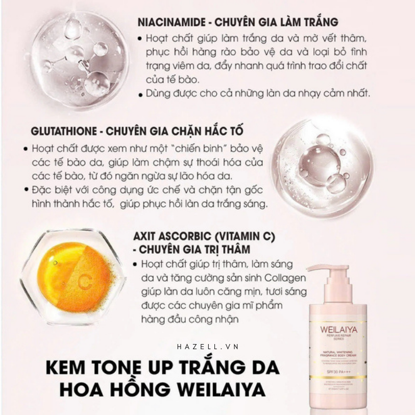 Điểm nổi bật của kem body tone up hoa hồng Weilaiya