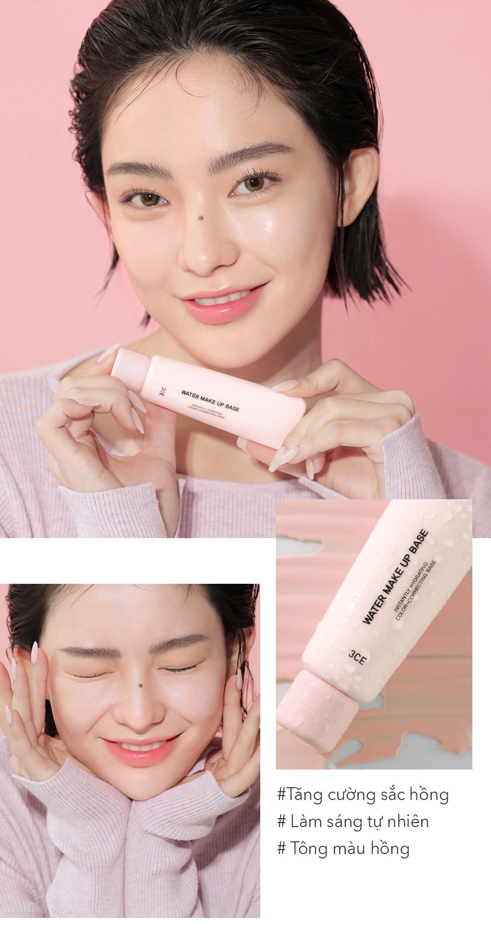 #PINK: nền nước sắc hồng làm sáng và tăng biểu cảm hồng hào bằng cách hiệu chỉnh da xỉn màu.