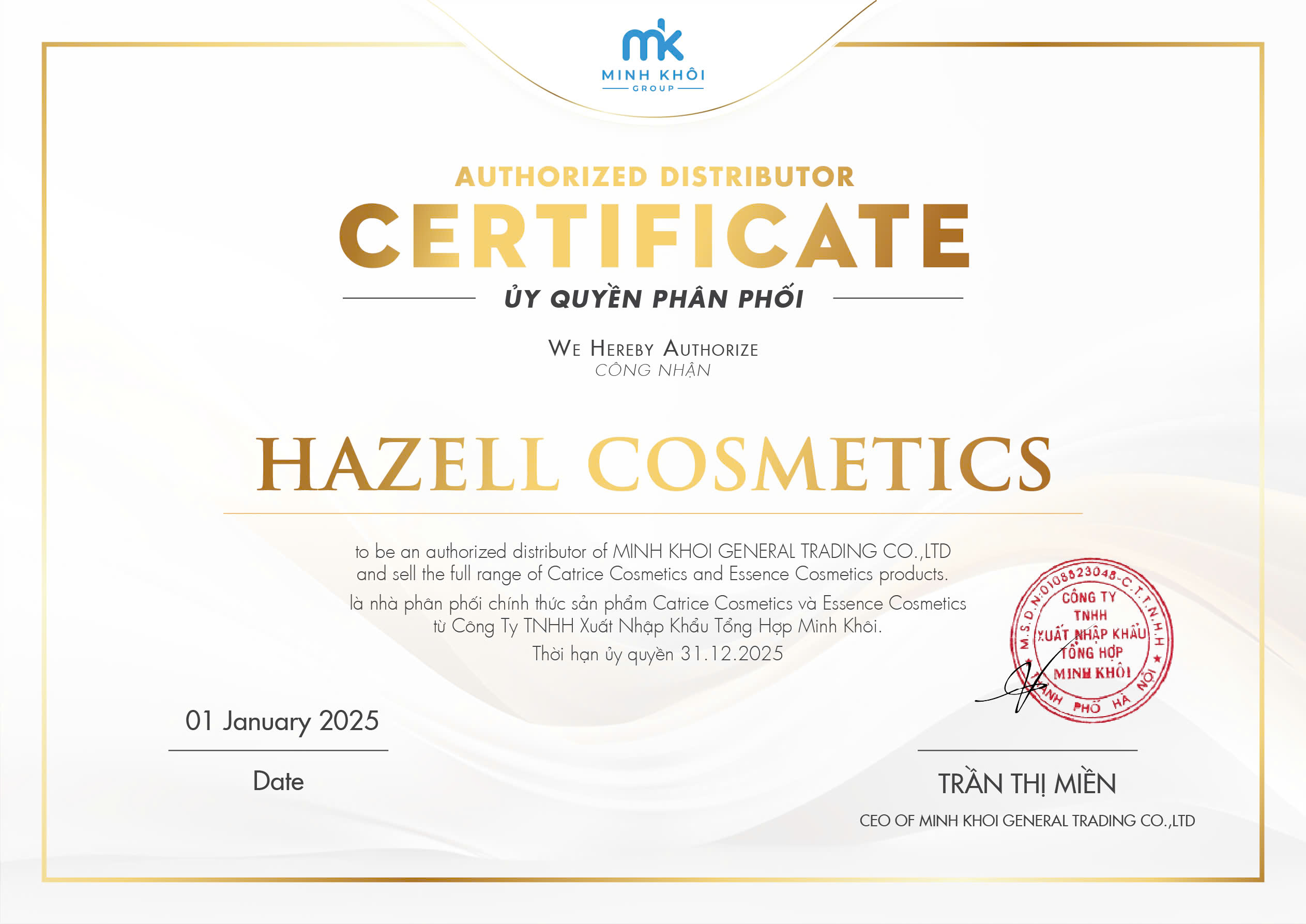 Hazell Cosmetics tự hào là đại lý phân phối chính thức