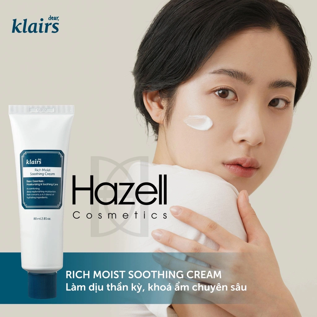 - Kem dưỡng ẩm Klairs Rich Moist Soothing Cream - 80ml: https://hazell.vn/kem-duong-am-klairs-rich-moist-soothing-cream-80ml
