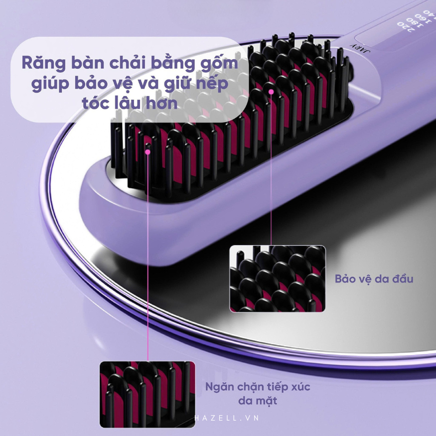 Răng lược silicone mềm – Massage da đầu: Đầu lược thiết kế bằng gốm mềm dẻo, không gây đau hay tổn thương da đầu. Khi chải tóc, bạn còn được massage nhẹ nhàng, giúp kích thích lưu thông máu và mang lại cảm giác thư giãn dễ chịu.