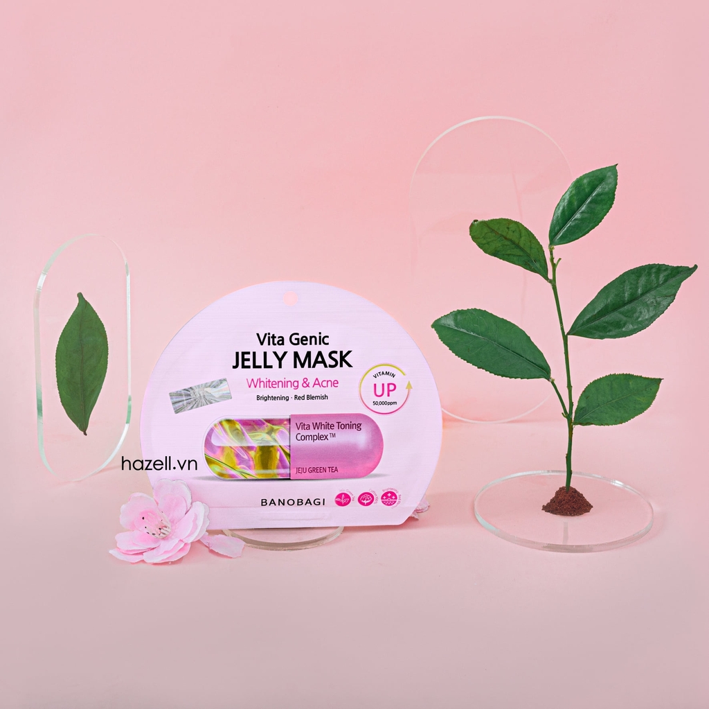 Mặt nạ BANOBAGI Vita Genic - Whitening & Acne Brightening Red Blemish Skin Jelly Mask Brightening Red Blemish - màu hồng: thành phần đặc biệt của banobagi, phức hợp dưỡng trắng vita và chiết xuất trà xanh jeju, có tác dụng chăm sóc lỗ chân lông, cải thiện độ đàn hồi, giảm sưng viêm do mụn, dưỡng trắng và giúp da mềm mại.