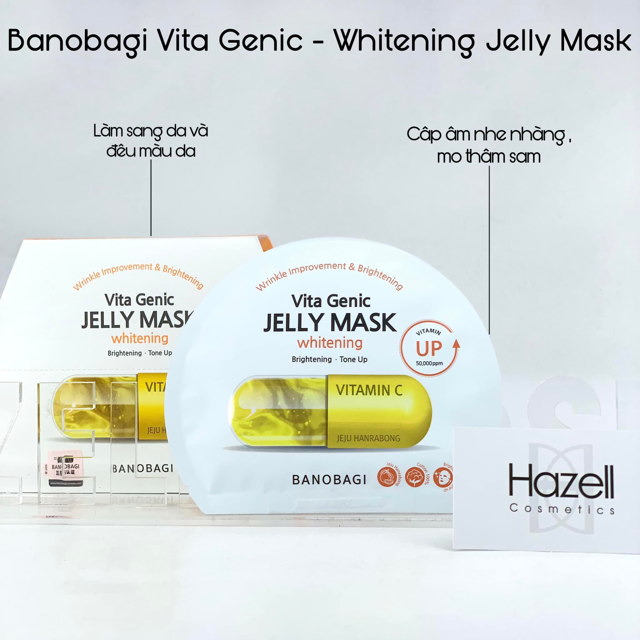 Mặt nạ BANOBAGI Vita Genic - Whitening Jelly Mask Brightening Tone Up có tác dụng làm sáng và đều màu da hơn. Bổ sung Vitamin C hàm lượng 20.000ppm được chiết xuất từ trái quýt tại đảo Jeju Hàn Quốc.