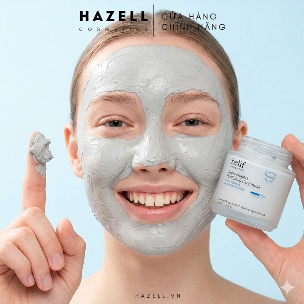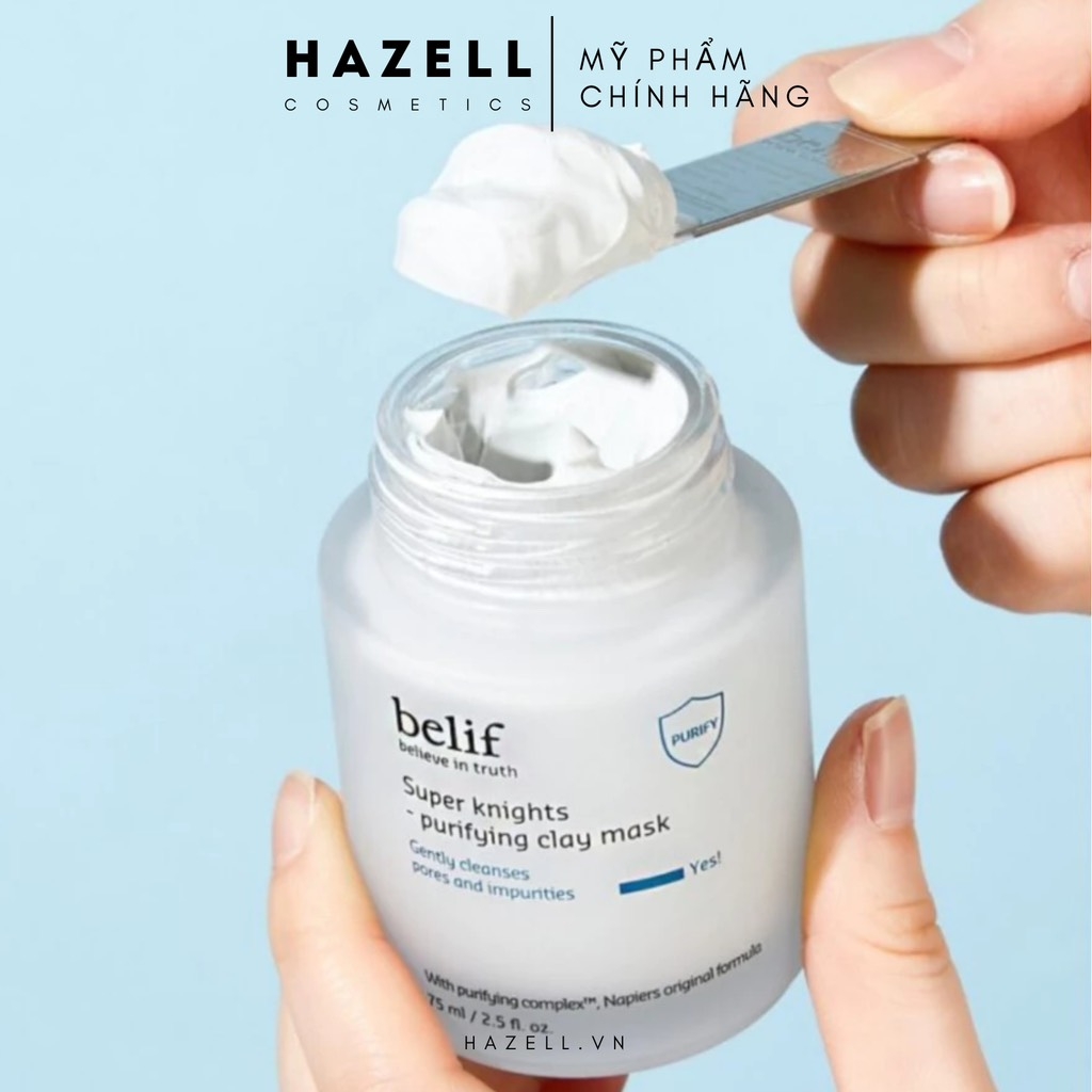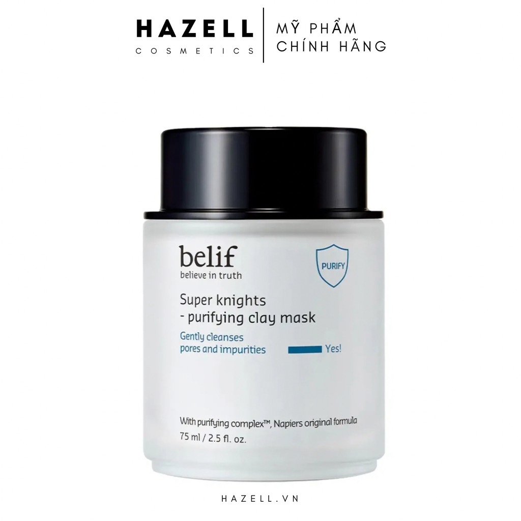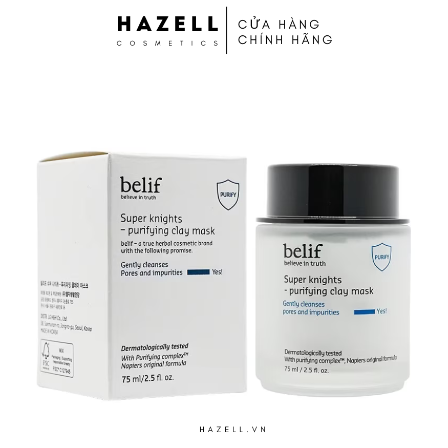 Belif Super Knights Purifying Clay Mask là dòng mặt nạ đất sét cao cấp đến từ thương hiệu dược mỹ phẩm Hàn Quốc - Belif, nổi bật với khả năng làm sạch sâu, kiểm soát dầu và thanh lọc làn da hiệu quả. Sản phẩm ứng dụng công nghệ Purifying Complex™ độc quyền kết hợp từ cây kế sữa và lá xô thơm, giúp loại bỏ tạp chất, dầu thừa và cặn bẩn tích tụ trong lỗ chân lông, nguyên nhân gây nên mụn và làn da xỉn màu.
