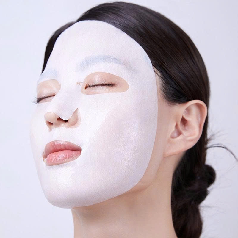 1. Sau khi rửa mặt sạch và dùng toner để cân bằng da, áp mặt nạ lên mặt.