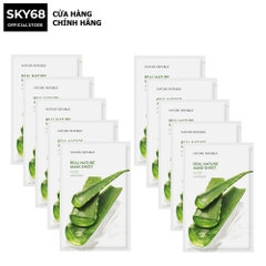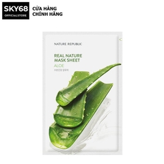 Nature Republic Real Nature Aloe Mask Sheet là mặt nạ đắp dạng miếng với chiết xuất từ lô hội chứa nhiều dưỡng chất hỗ trợ dưỡng da mềm mịn và giảm mụn.