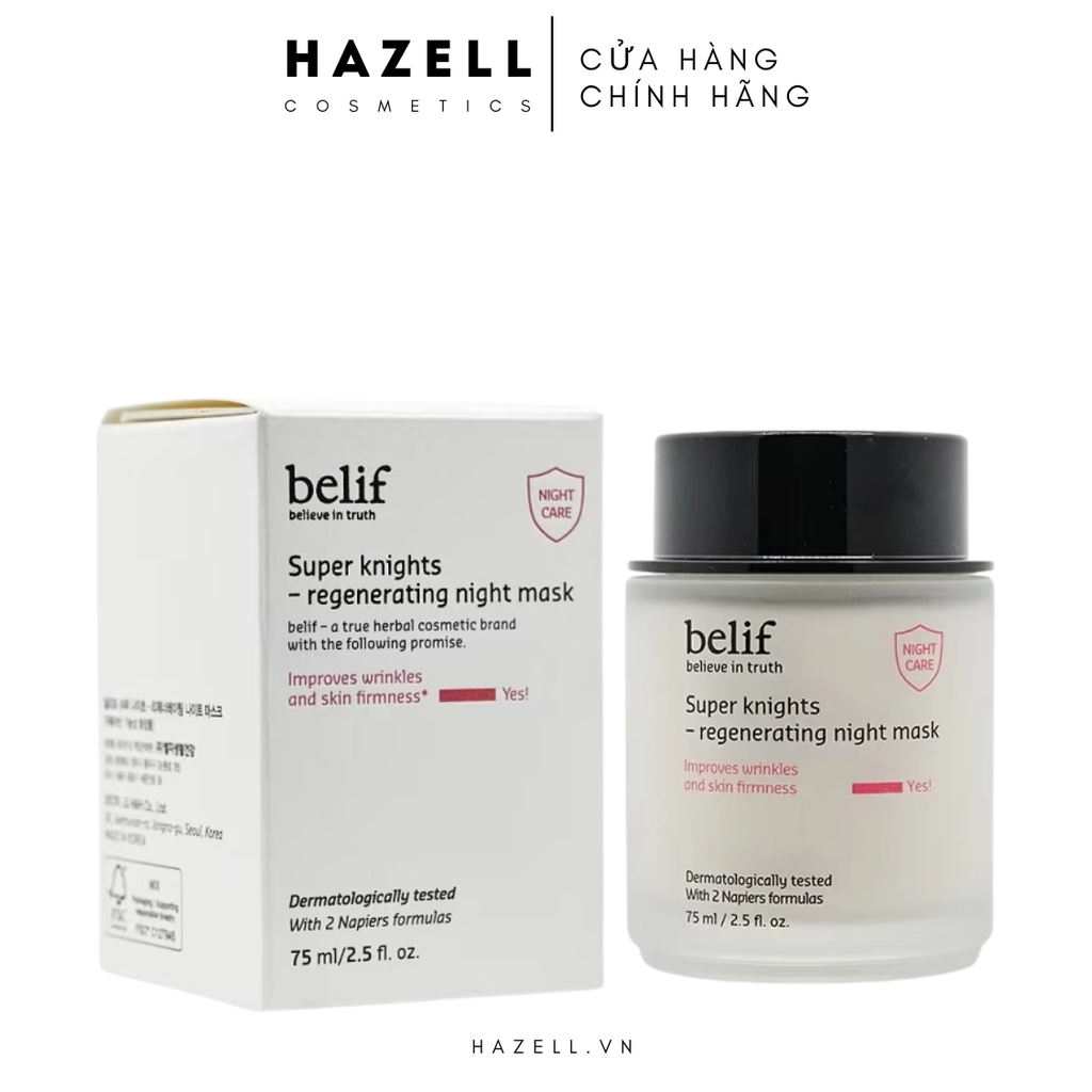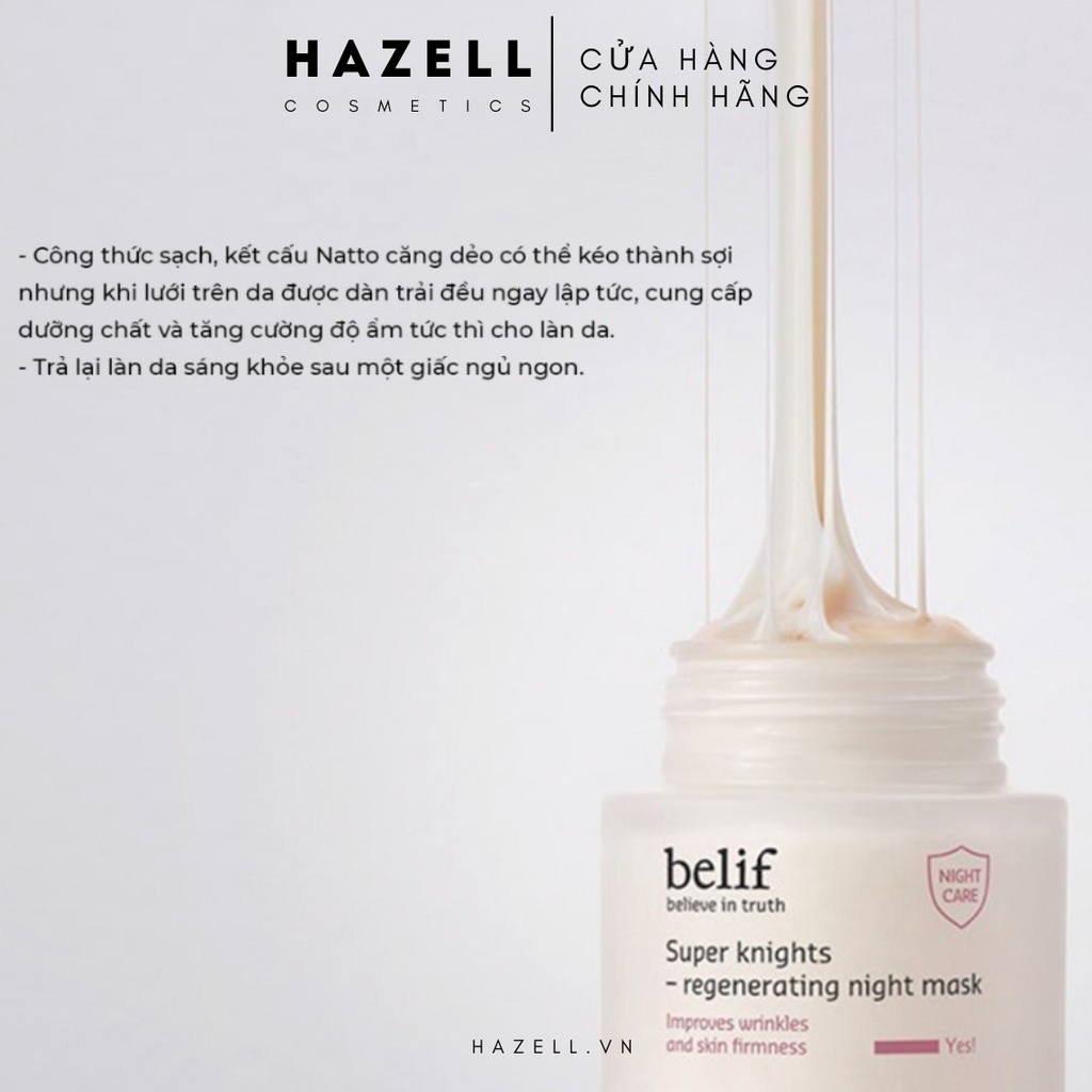 Mặt nạ ngủ Belif Super Knight Regenerating Night Mask được sản xuất theo công thức thảo dược sạch độc đáo, hỗ trợ cấp ẩm da chuyên sâu, giữ ẩm sâu từ lớp biểu bì đến tận sâu bên trong. Tăng cường hàng rào ẩm tự nhiên, tái tạo phục hồi da tổn thương chỉ sau một đêm. Trả lại làn da sáng khỏe, ẩm mịn màng.