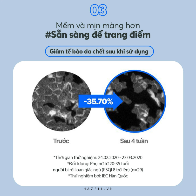 - Sleeptox TM: chuyển hóa sâu vào da, nhờ lớp màng beta-glucan: Khóa ẩm tối ưu, phục hồi, tái tạo giúp da căng mướt suốt đêm