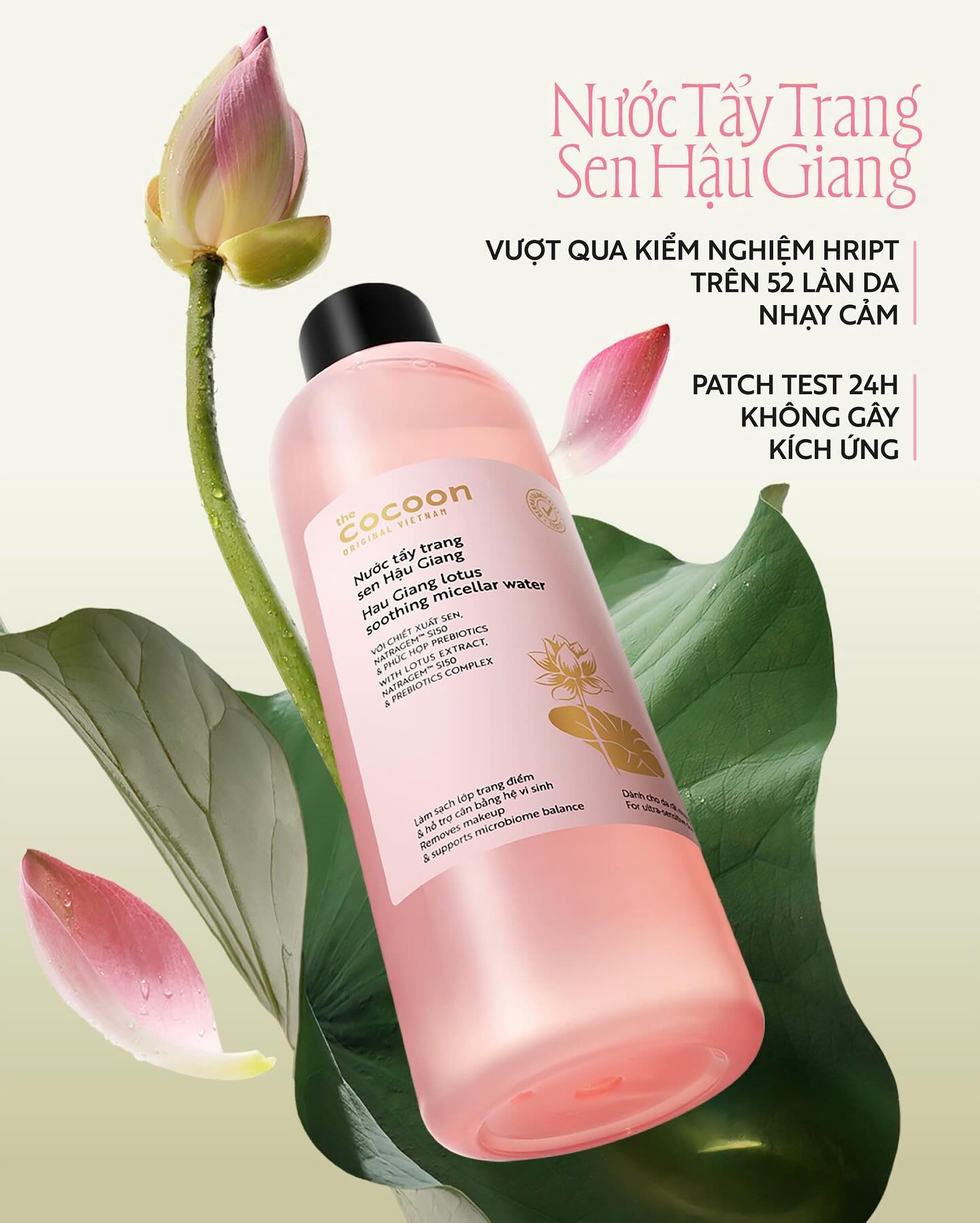 Khai thác sức mạnh từ những đóa sen tinh khiết vùng Hậu Giang, kết hợp công nghệ micellar và NatraGem™ S150, phức hợp prebiotics cùng các hoạt chất làm dịu chuyên sâu, Nước Tẩy Trang Sen Hậu Giang dành riêng cho làn da rất nhạy cảm, giúp làm sạch hiệu quả lớp trang điểm, bụi bẩn, dầu thừa nhưng vẫn duy trì độ ẩm tự nhiên, bảo vệ hàng rào độ ẩm và hỗ trợ cân bằng hệ vi sinh cho da.