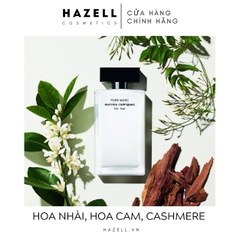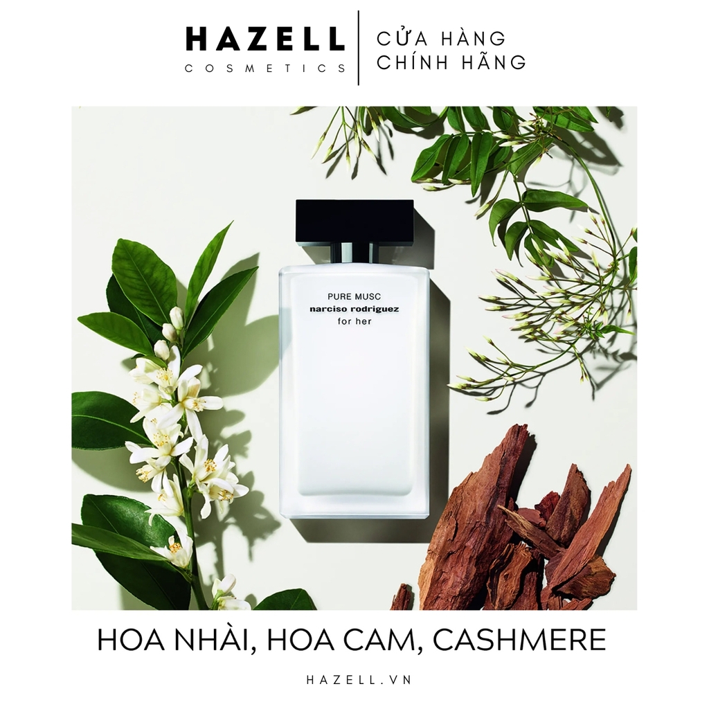 Ba tầng hương cơ bản nhất người ta có thể nhận thấy rõ được ở nước hoa Nar trắng chính là gỗ, hương hoa và xạ hương. Nước hoa Narciso Rodriguez Pure Musc For Her EDP mở ra nốt hương đầu với hương thơm đặc trưng của xạ hương. Xạ hương là loại hương thơm quyến rũ và gợi cảm nhất trong thế giới hương nước hoa. Các cô nàng sẽ bị Nar trắng cuốn hút hay từ nốt hương đầu này. có xạ hương xuất hiện từ ngay ban đầu. Tầng hương thứ 2 khiến tổng thể mùi hương trở nên ngọt ngào hơn. Với chiết xuất từ hương hoa trắng tinh khiết, thanh thuần. Trung hòa với sự nồng nàn của xạ hương ở tầng đầu tiên. Những nốt hương của tầng hương cuối là sự xuất hiện của nhóm hương gỗ quen thuộc. Mang lại cảm giác ấm áp bao phủ lấy các cô nàng.
