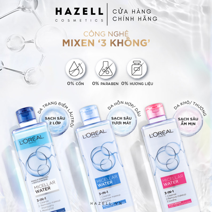 Lớp Micellar chứa các hạt mixen siêu nhỏ len lỏi sâu và dễ dàng lấy đi bụi bẩn, dầu thừa, lớp trang điểm và chất bẩn khác mà không làm khô da.
