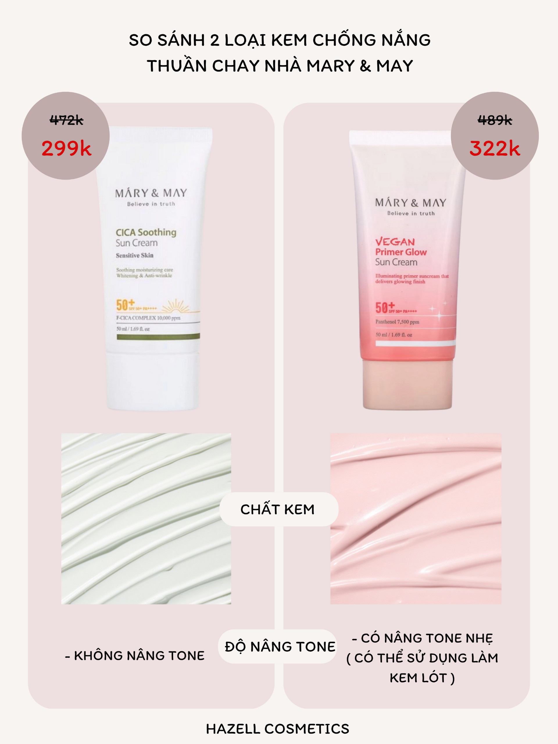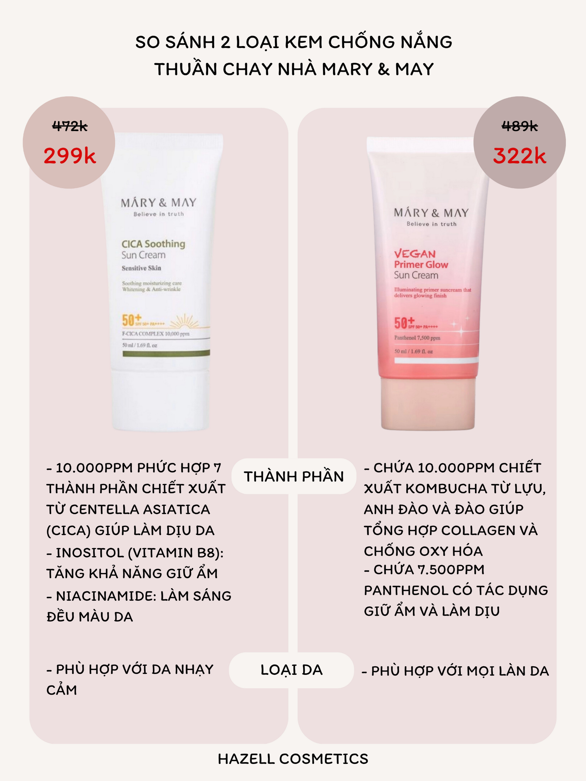 Nhà Mary & May đã cho ra mắt 2 phiên bản kem chống nắng thuần chay dành cho các bạn da nhạy cảm, Hôm nay Hazell sẽ giúp bạn phân biệt 2 loại đó nha.