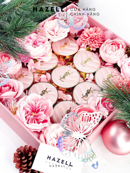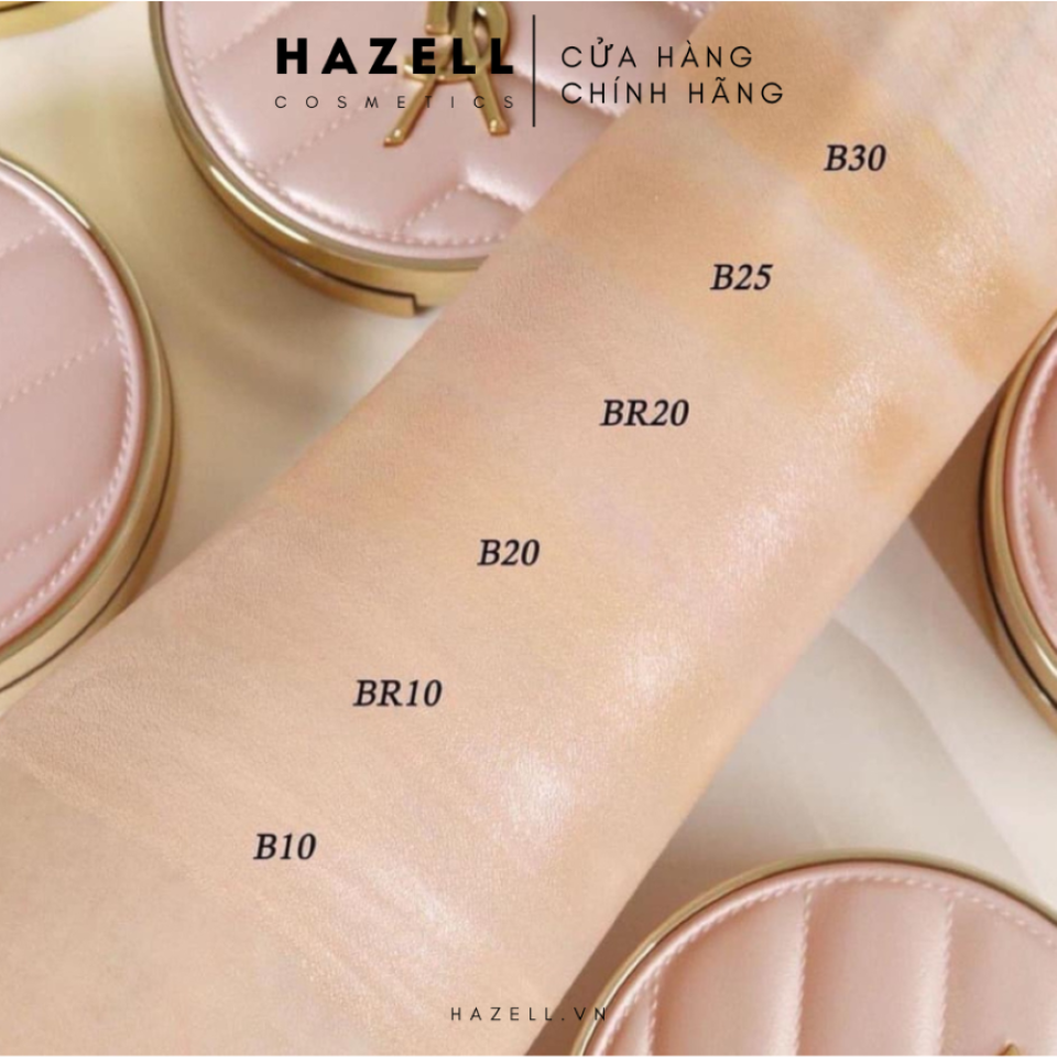 Cũng giống với phiên bản phấn nước đình đám trước đó, YSL Touche Eclat Glow-Pact Cushion được chế tác dành cho những cô nàng tông da châu Á để duy trì làn da trắng sáng và khoẻ mạnh cho nàng. Hazell sẵn các tone màu của phấn nước YSL vỏ hồng bao gồm: