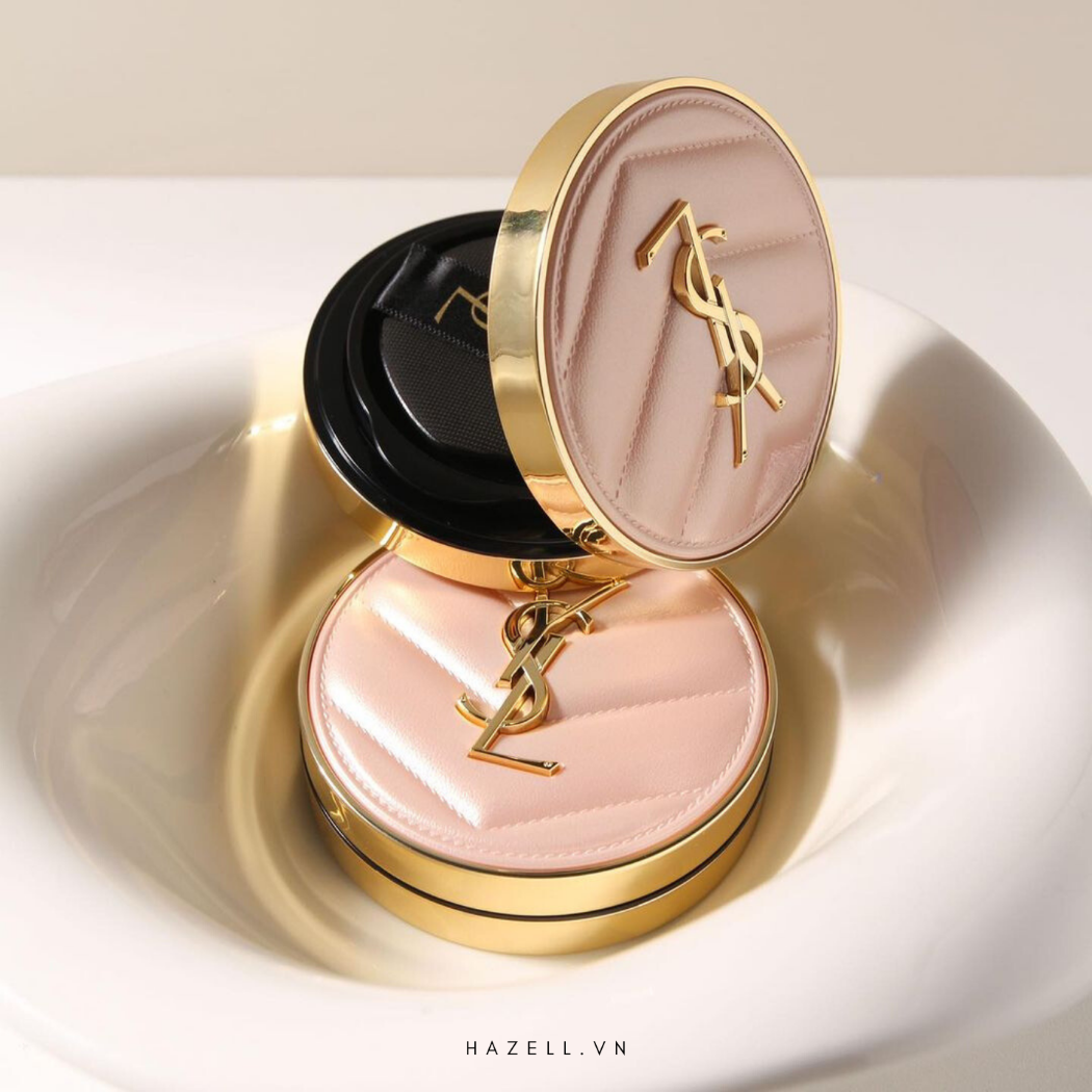 Một trong số những cái tên cushion ấn tượng nhất định phải kể tới là Phấn nước YSL. Item hot hit nổi danh trong giới hi-end được các nàng săn đón nồng nhiệt mỗi lần ra phiên bản mới. Phấn Nước Cushion YSL Touche Eclat Glow Pact là dòng cushion được cải tiến với thiết kế vỏ da màu hồng mang biểu tượng của Saint Laurent. Nhà YSL cực kỳ chiều long phái đẹp ở thị trường châu Á rộng lớn khi cho da dòng phấn nước này.