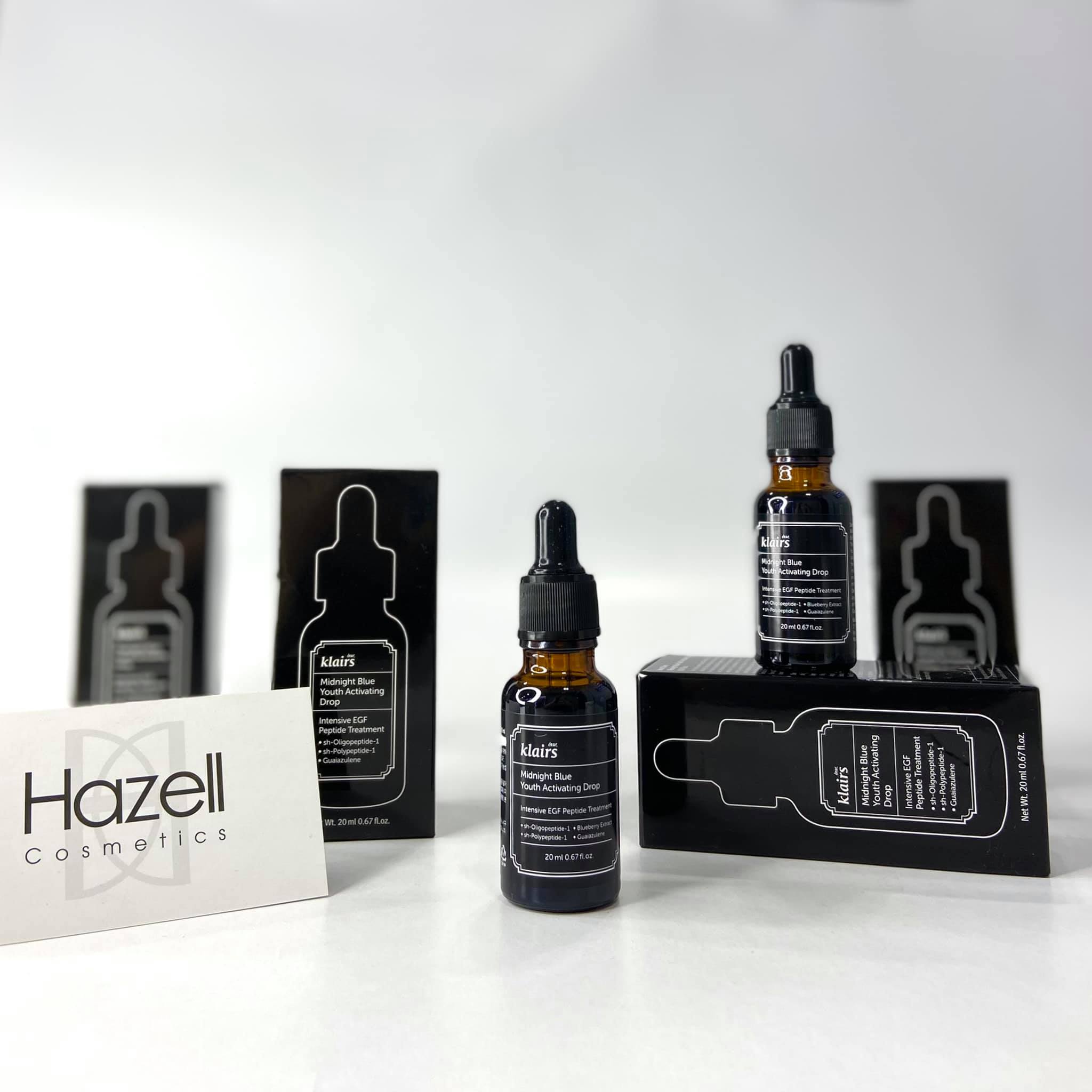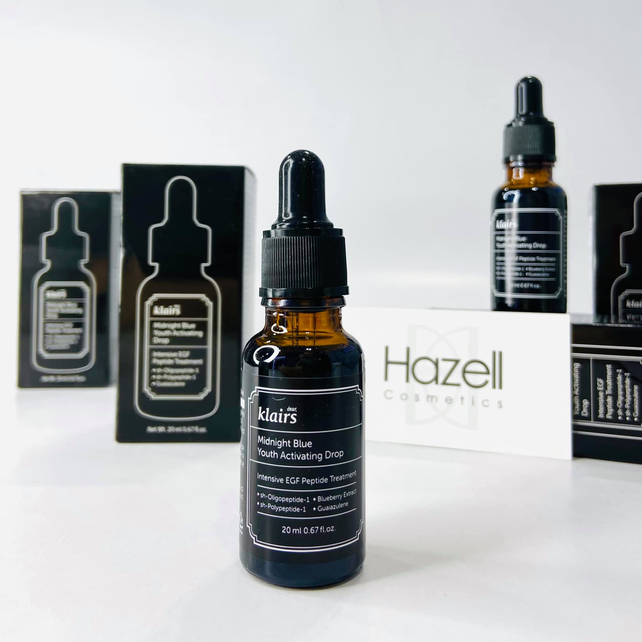 Klairs Midnight Blue Youth Activating Drop là sản phẩm được sử dụng trước khi đi ngủ, với thành phần chính là EGF (sh-Oligopeptide-1), bFGF (sh-Polypeptide-1). Đây là 2 hoạt chất do cơ thể tự sản sinh ra, giúp giữ cho da khỏe ở bên trong và đẹp từ bên ngoài. Các hoạt chất này sẽ giúp da căng bóng và mịn màng, có độ đàn hồi cao, đồng thời còn giúp giảm thiểu nếp nhăn, làm căng mịn làn da và hỗ trợ đẩy lùi các dấu hiệu tuổi tác và lão hóa.a