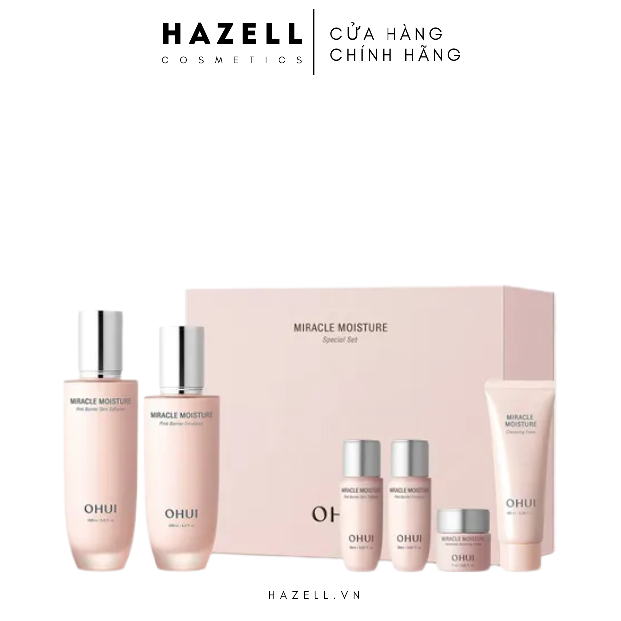 – Nước cân bằng dưỡng ẩm căng bóng da Ohui Miracle Moisture Pink Barrier Softerner 150ml + 20ml : nuôi dưỡng làn da ẩm mượt, mềm mịn, đồng thời phục hồi những vùng da bị thương tổn