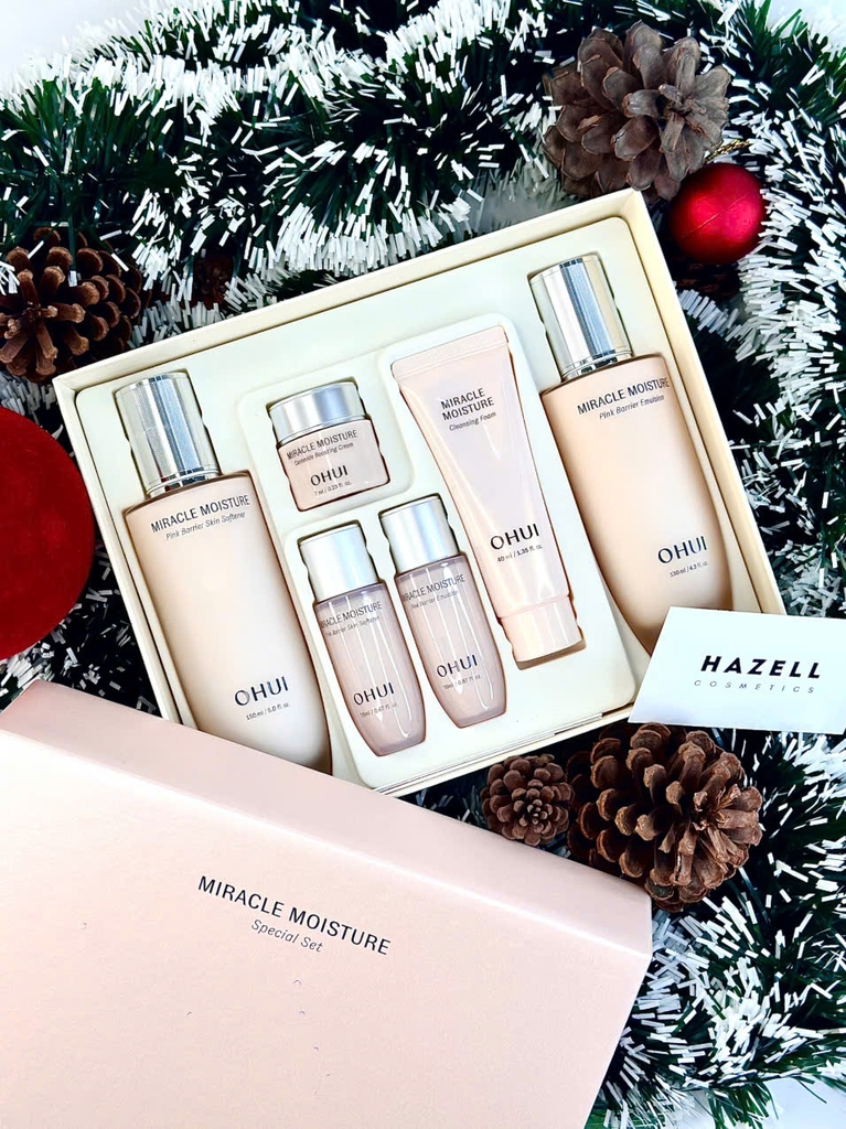 Bộ Dưỡng Da Ohui Miracle Moisture Pink Barrier 2PCS Set 6 Món phù hợp với làn da khô, da mẫn cảm.