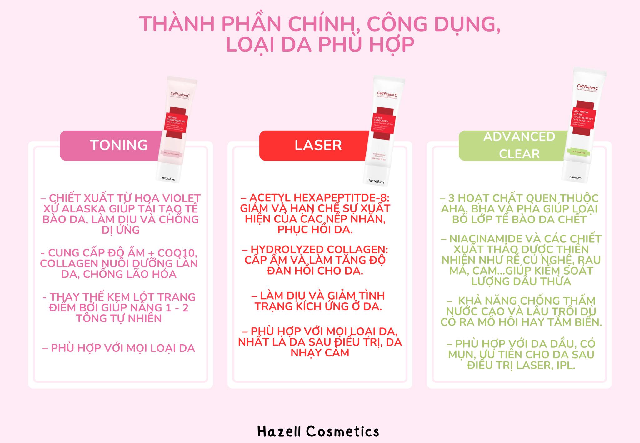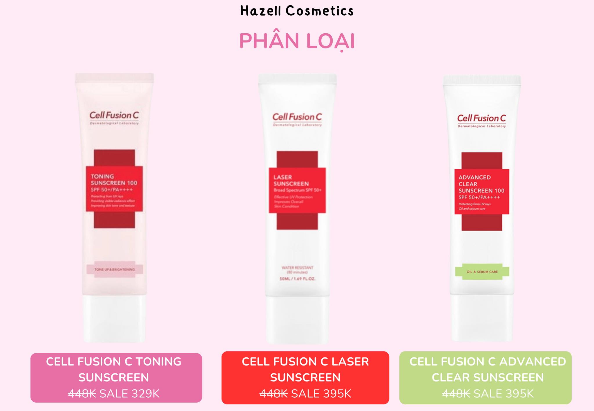 - Hiện tại shop đang về sẵn 3 loại chống nắng nhà Cell Fusion C