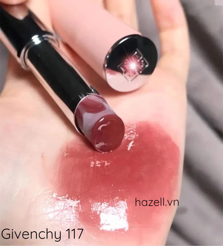 Son Dưỡng Givenchy Rose Perfecto Lip Balm màu N117 Chilling Brown là một tone son dưỡng sắc thái độc quyền mới từ Givenchy: tone màu hồng nâu gạch tạo hiệu ứng phát sáng tự nhiên - chính là phiên bản giới hạn lấp lánh màu hồng nâu gạch có chút ánh đỏ nhẹ cực kỳ nổi bật và sống động, phù hợp với mọi lối make up thậm chí có thể dùng với cả mặt mộc. Son dưỡng có lớp màu kết thúc hoàn hảo phù hợp cho trang phục hàng ngày.