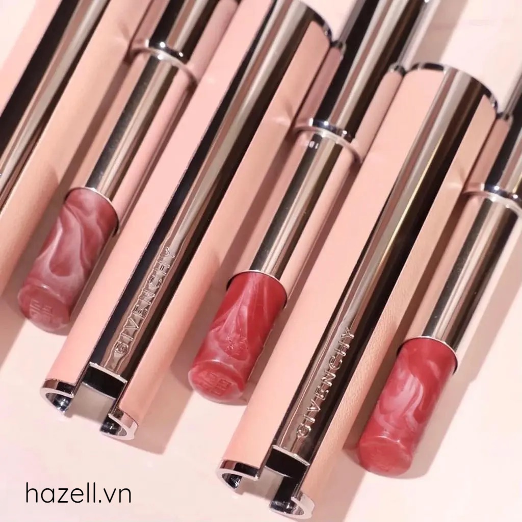 Thương hiệu Givenchy vốn nổi tiếng là một trong những nhà mốt xa xỉ ở lĩnh vực thời trang được yêu thích nhất thế giới, thiết lập các xu hướng mới trong thời trang và ngành beauty cao cấp bằng một loạt các sản phẩm nước hoa, nước hoa, trang điểm và chăm sóc da. Son Dưỡng Givenchy Rose Perfecto Lip Balm phiên bản son dưỡng có màu thuộc bộ sưu tập bảng giới hạn của Givenchy. Cây son được thiết kế ánh kim tuyến được tạo hình hoa văn đá cẩm thạch một cách độc đáo trên thân son.