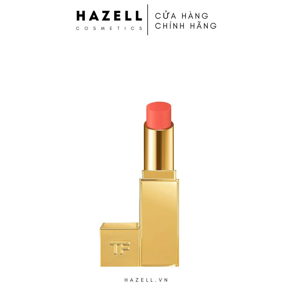 Logo “TF” của Tom Ford được khắc tinh tế trên nắp son thể hiện sự nhận diện thương hiệu mạnh mẽ và đẳng cấp. Phần thân son bên dưới nắp cũng được phủ màu vàng ánh kim tương tự tạo nên sự đồng bộ và hài hòa trong thiết kế. Đặc biệt, phần đầu son được thiết kế dạng vát giúp dễ dàng thoa lên môi một cách chính xác và mượt mà. Tổng thể, thỏi son phản ánh đẳng cấp và sự tinh tế của thương hiệu Tom Ford.