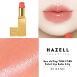 Tom Ford Soliel Lip Balm cung cấp các dưỡng chất khi sử dụng lâu dài, độ bám màu cao, hòa quyện khi tiếp xúc với môi. Đầu son hình tròn giúp thoa son dễ dàng, mang lại độ che phủ có thể điều chỉnh và tăng dần với lớp hoàn thiện tinh tế. Thuộc dạng son dưỡng, áp dụng công nghệ sản xuất độc quyền của thương hiệu. Chất son lên môi thấm nhanh giúp bạn thoải mái ăn uống mà không hề bị lem. Với thành phần hoàn toàn lành tính giúp bảo vệ môi, ẩm mịn và căng mọng, ko làm dày hay nặng môi, bạn có thể thoải mái sử dụng hàng ngày, tự tin khi đi dự tiệc, đi làm đều rất phù hợp.
