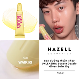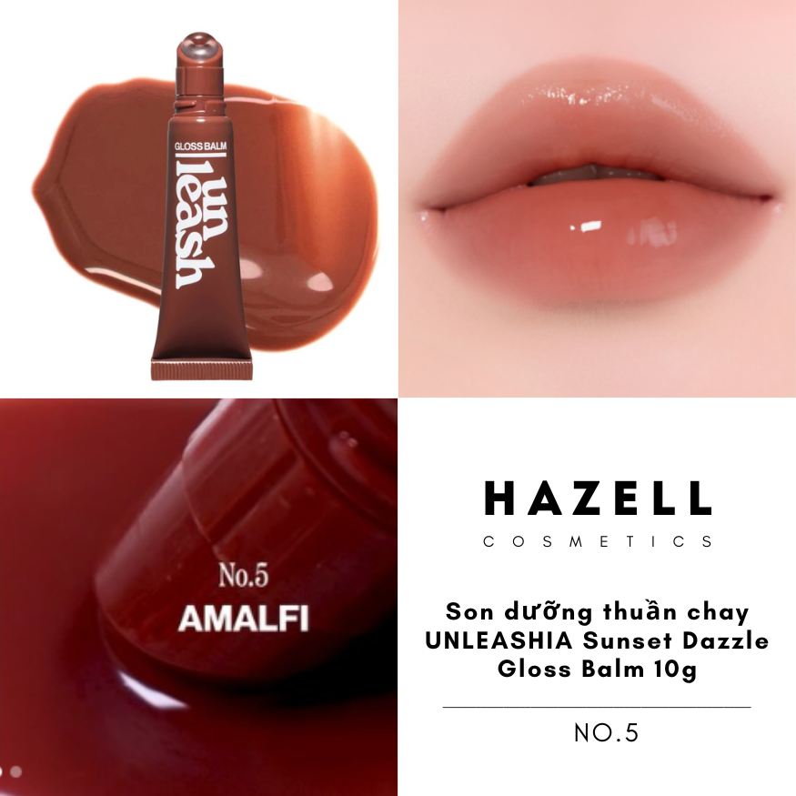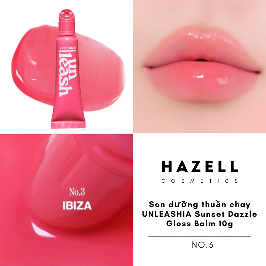 Unleashia Sunset Dazzle Gloss Balm là sự kết hợp hoàn hảo giữa son dưỡng (balm) và son bóng (gloss), mang lại hiệu ứng đôi môi căng mọng như gương. Được lấy cảm hứng từ vẻ đẹp rực rỡ của ánh hoàng hôn trên các bãi biển nổi tiếng, dòng son này sở hữu công thức thuần chay lành tính với các thành phần quý giá như Peptide, Vitamin E và Vitamin C. Sản phẩm không chỉ giúp đôi môi rạng rỡ tức thì mà còn nuôi dưỡng sâu, cải thiện tình trạng khô ráp và rãnh môi. Đây là lựa chọn lý tưởng cho phong cách trang điểm trong trẻo, tự nhiên và đầy sức sống.