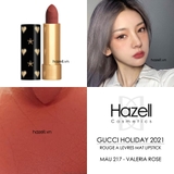 Bộ sưu tập son Gucci Rouge a Levres Mat Lipstick Holiday 2021 có chất son lì hoàn hảo, siêu mịn, che được hết các khuyết điểm của môi. Cũng như có thể thoải mái lựa chọn cách đánh riêng từ phủ kín theo phong cách quyến rũ, cá tính. Hay lòng môi theo style trẻ trung, năng động