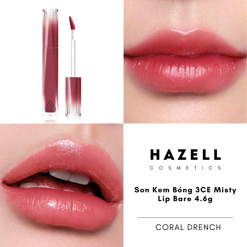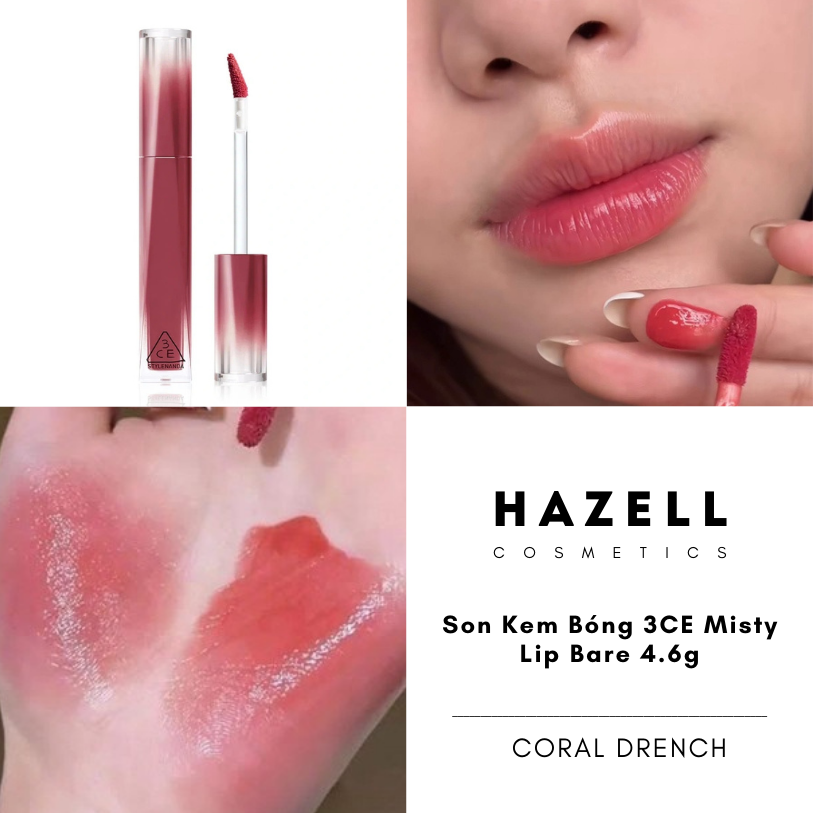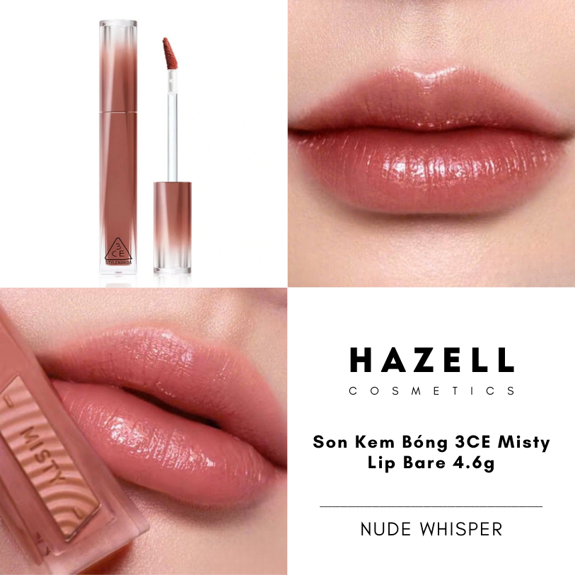 3CE Misty Lip Bare là dòng son tint bóng "pha lê" thế hệ mới, mang đến trải nghiệm đôi môi căng mọng như được phủ một màn sương mai. Sản phẩm nổi bật với kết cấu Misty Comfort siêu mỏng nhẹ, sử dụng công nghệ Water-Oil-Pigment giúp tạo độ bóng trong veo như kính mà hoàn toàn không gây cảm giác bết dính hay nặng môi. Với sự kết hợp giữa khả năng dưỡng ẩm từ Sodium Hyaluronate và khả năng giữ màu stain bền bỉ lên đến 12 giờ, đây là lựa chọn hoàn hảo cho những ai yêu thích phong cách trang điểm tự nhiên, trong trẻo và thanh lịch.