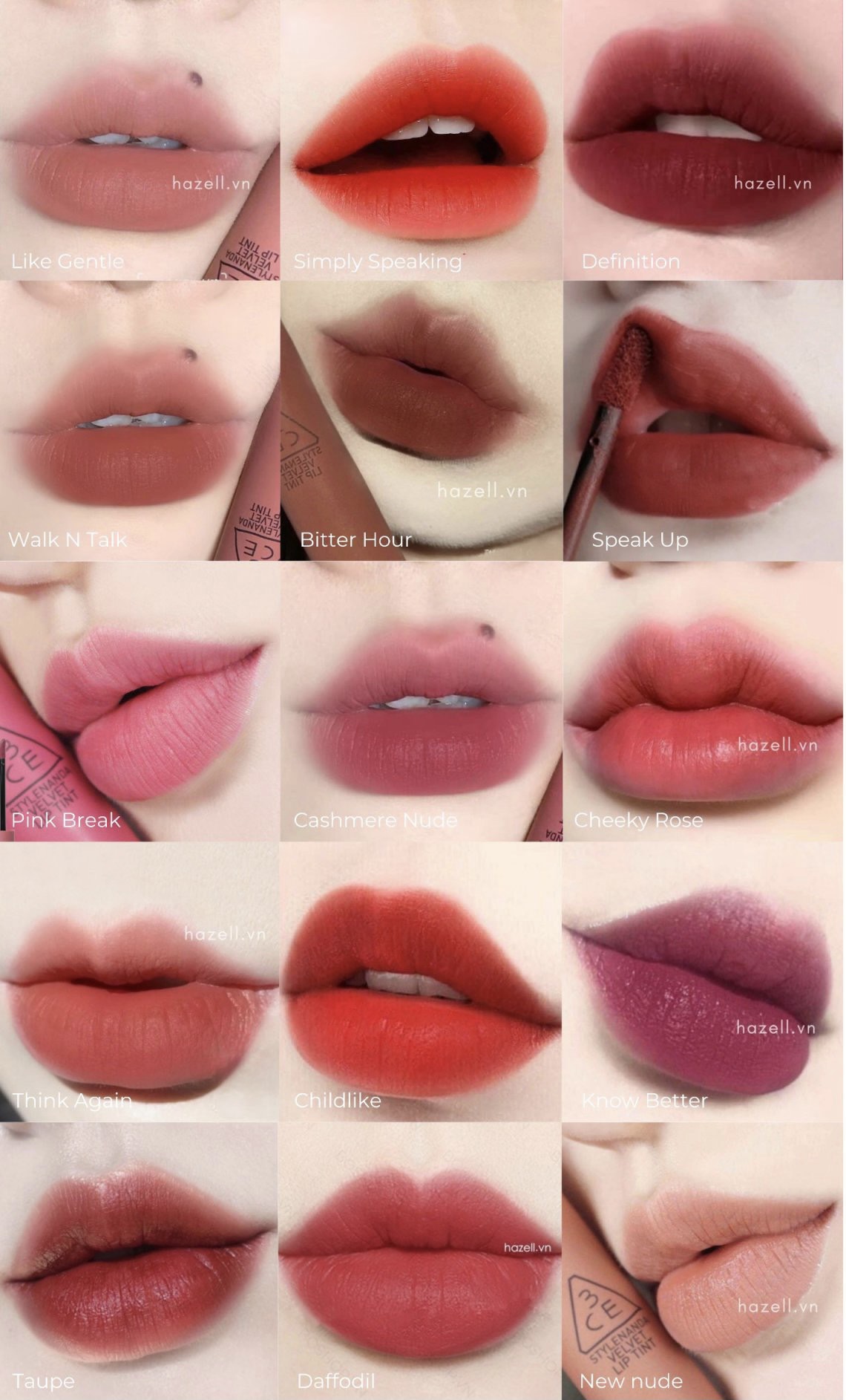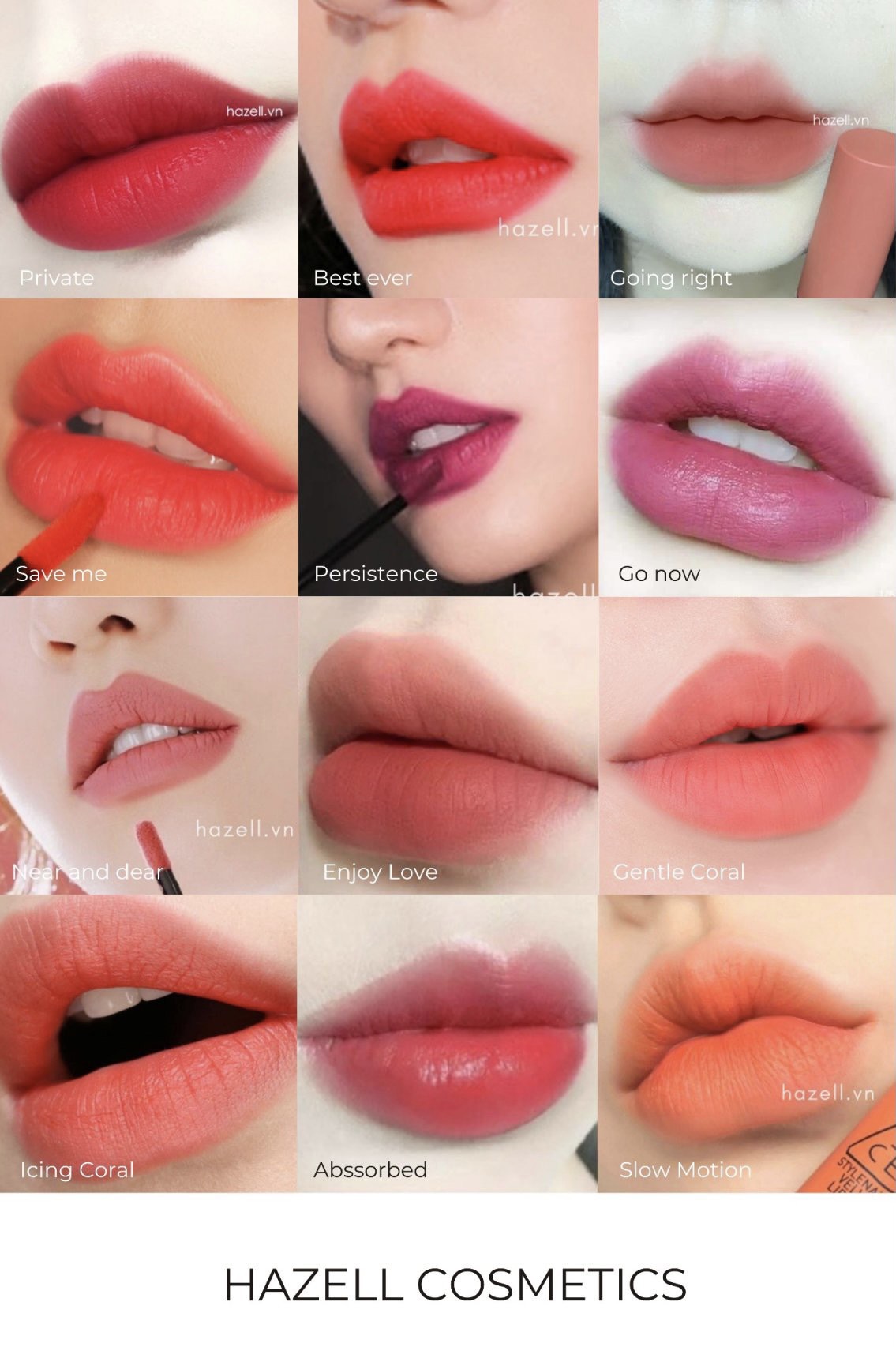 Cùng xem swatch các màu son #CE Velvet Lip Tint :