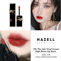 - Son YSL màu 416 Chili Provocation : màu đỏ chili siêu cháy; vừa đậm đà, vừa phảng phất chút sắc cam ấm áp, vừa rực rỡ lại vừa tinh tế, giúp đôi môi “bật sáng” không cần filter. Biến diện mạo của nàng trở nên như bừng sáng trong một nốt nhạc , tôn da vô cùng . Đây có thể được coi là một sắc đỏ vưa sang chảnh, vừa cá tính mà vẫn rất thời thượng; giúp nàng ghi điểm nổi bật ngay từ lần chạm đầu tiên.