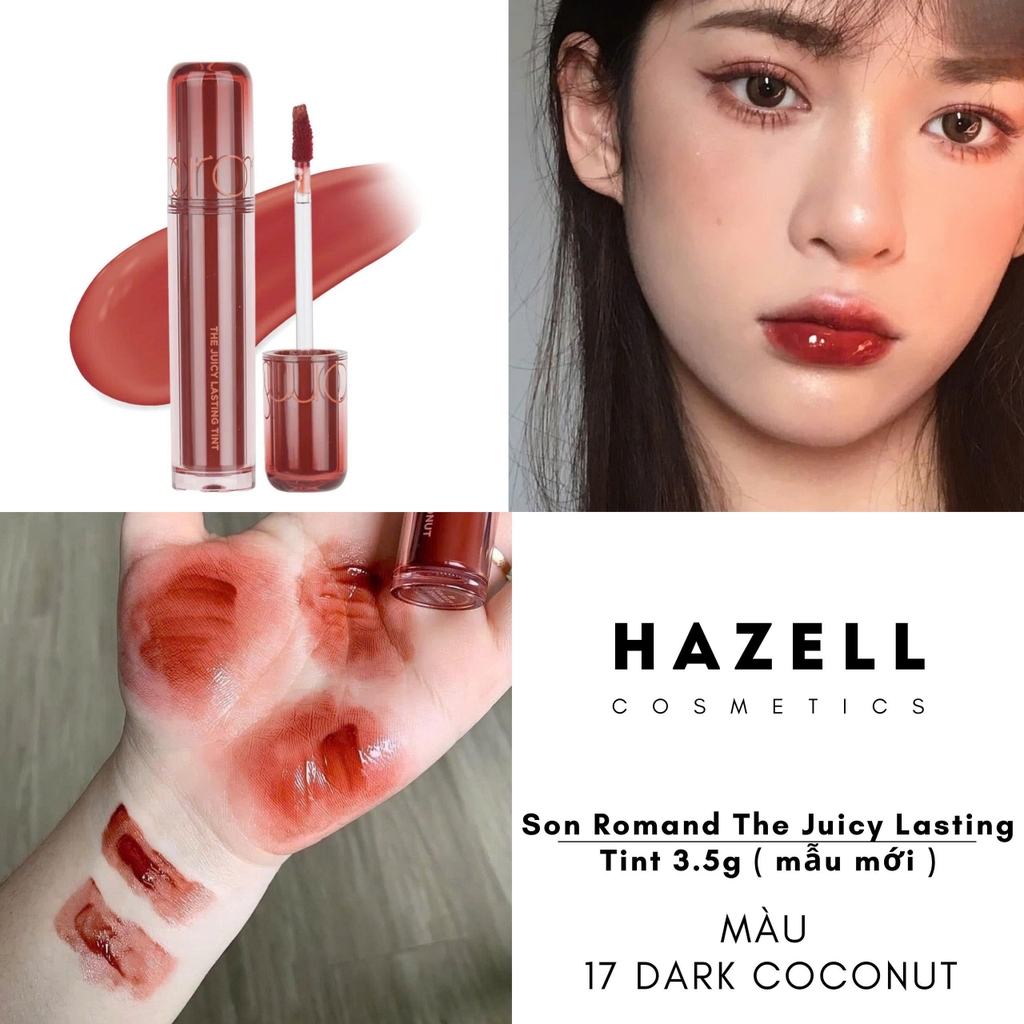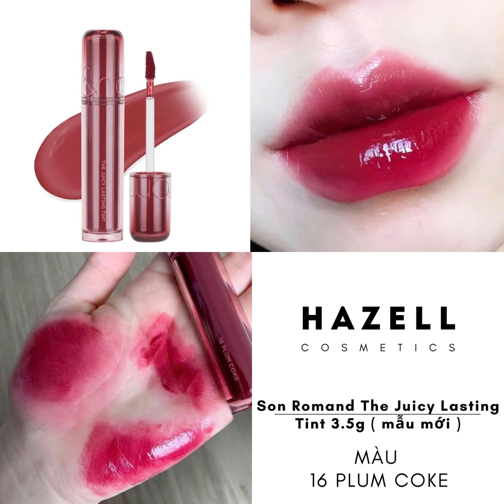 Son tint lì căng bóng The Juicy Lasting Tint là son tint thuộc thương hiệu Romand với chất son trong trẻo, tạo hiệu ứng căng mọng tự nhiên cho đôi môi, màu son duy trì trong nhiều giờ liền cho bạn cảm giác bờ môi sáng bóng, căng mọng và ngọt ngào.
